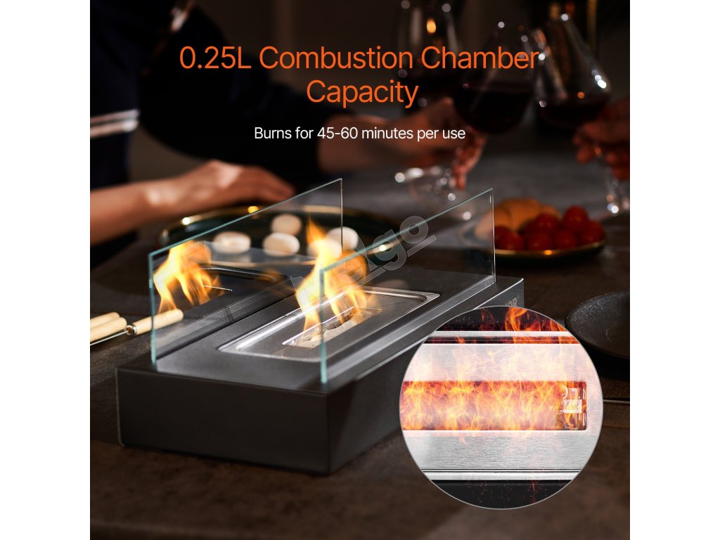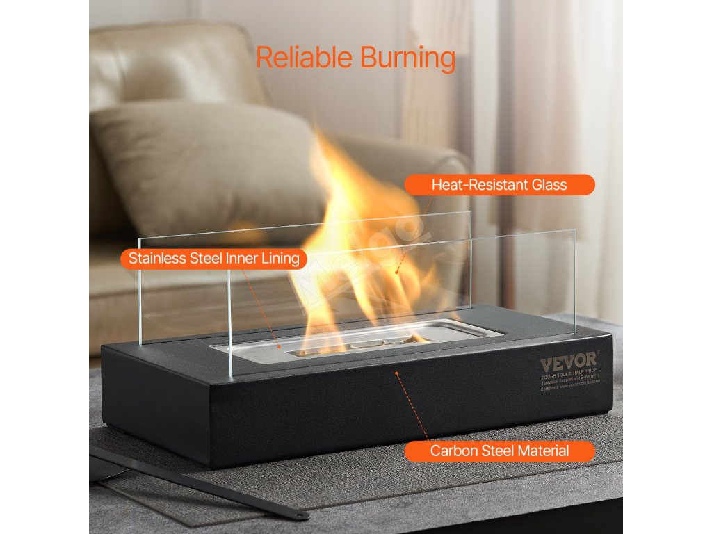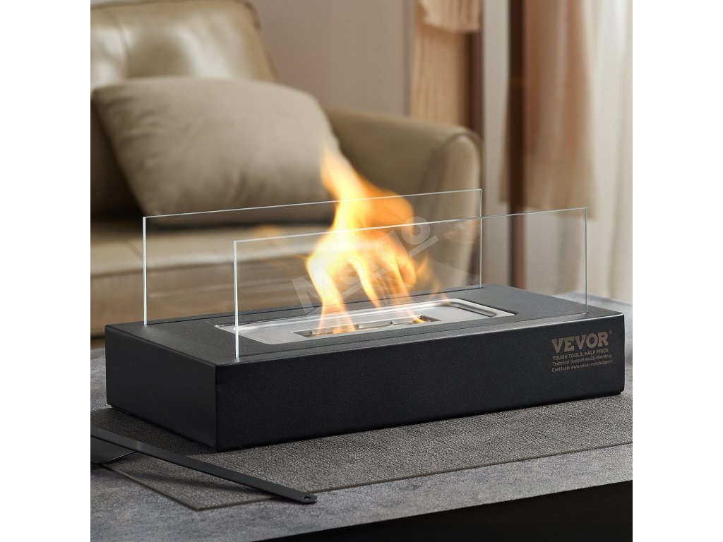 Stolový prenosný kovový krb 14inch na lieh, štvorcový so sklom 3.2lbs