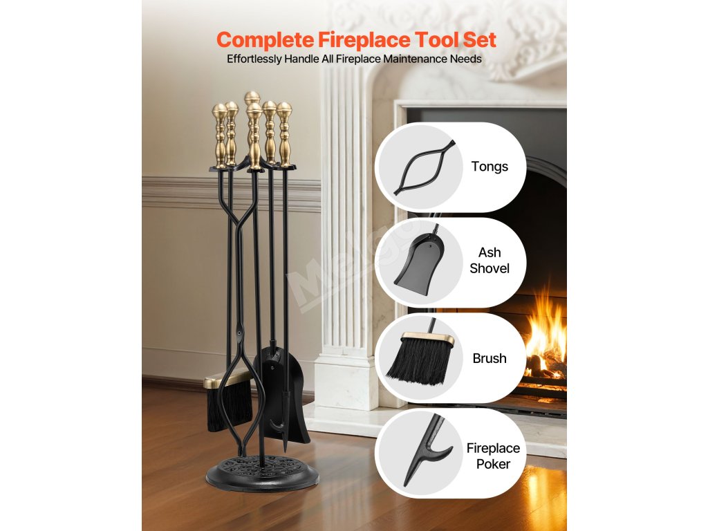 Súprava krbového náradia do interiéru sa môže pochváliť širokou použiteľnosťou a je vhodná pre domáce krby, kachle na drevo, vonkajšie ohniská a kempingové ohne. Spĺňa rozmanité potreby použitia s veľkou všestrannosťou.