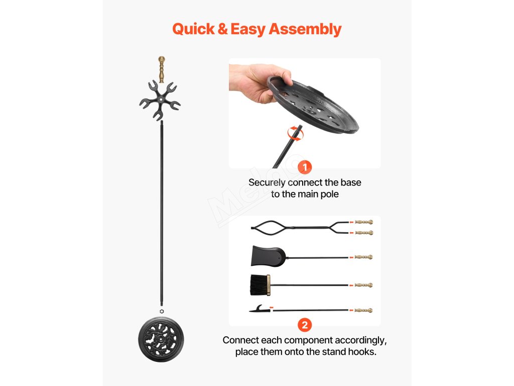 Vďaka robustnému a kvalitnému stojanu, stabilným háčikom a odolnej základni udrží toto krbové náradie každý kus bezpečne na svojom mieste. Stabilná konštrukcia zaručuje, že náradie zostane prehľadne usporiadané a ľahko prístupné.