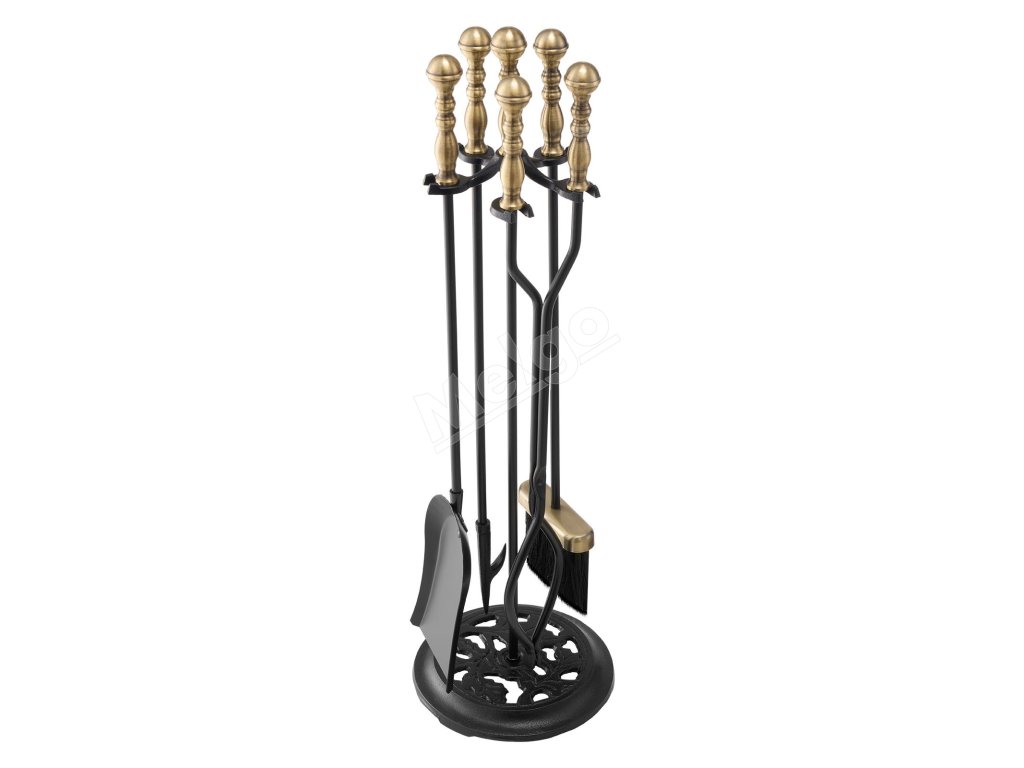 Sada krbových náradí 5 ks stojan lopatka kliešte poker čierna/mosadz