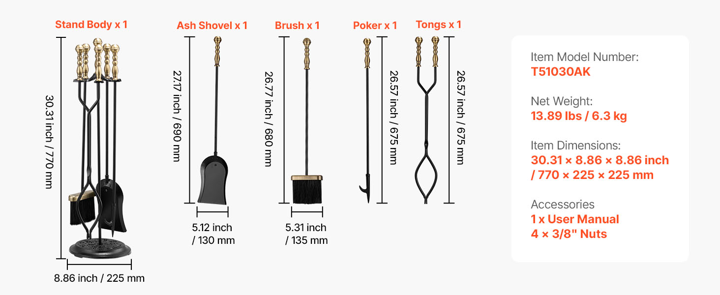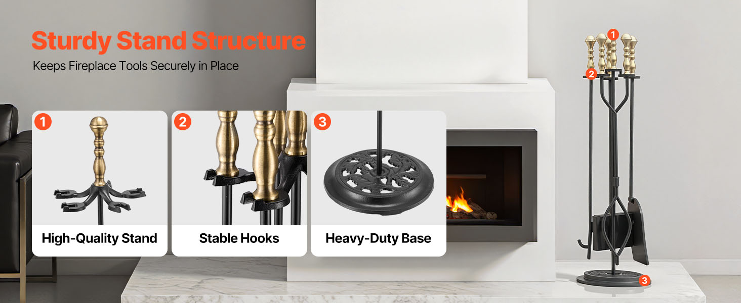 Táto súprava krbového náradia je vyrobená z prvotriedneho kovaného železa, uhlíkovej ocele a práškovej povrchovej úpravy a je odolná voči ohýbaniu, hrdzi a vysokým teplotám, čo zaručuje dlhodobú životnosť. Ergonomické predĺžené rukoväte poskytujú pohodlné uchopenie odolné voči teplu, ktoré je nevyhnutným pomocníkom pri používaní krbu.