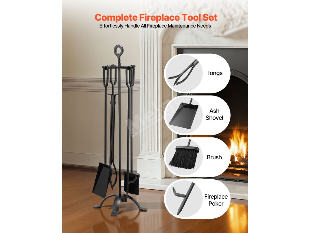 Súprava krbového náradia do interiéru sa môže pochváliť širokou použiteľnosťou a je vhodná pre domáce krby, kachle na drevo, vonkajšie ohniská a kempingové ohne. Spĺňa rozmanité potreby použitia s veľkou všestrannosťou.