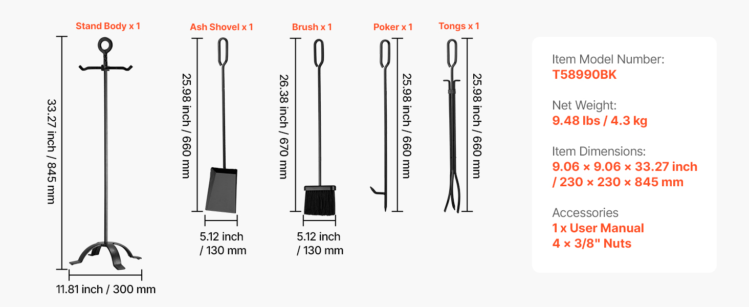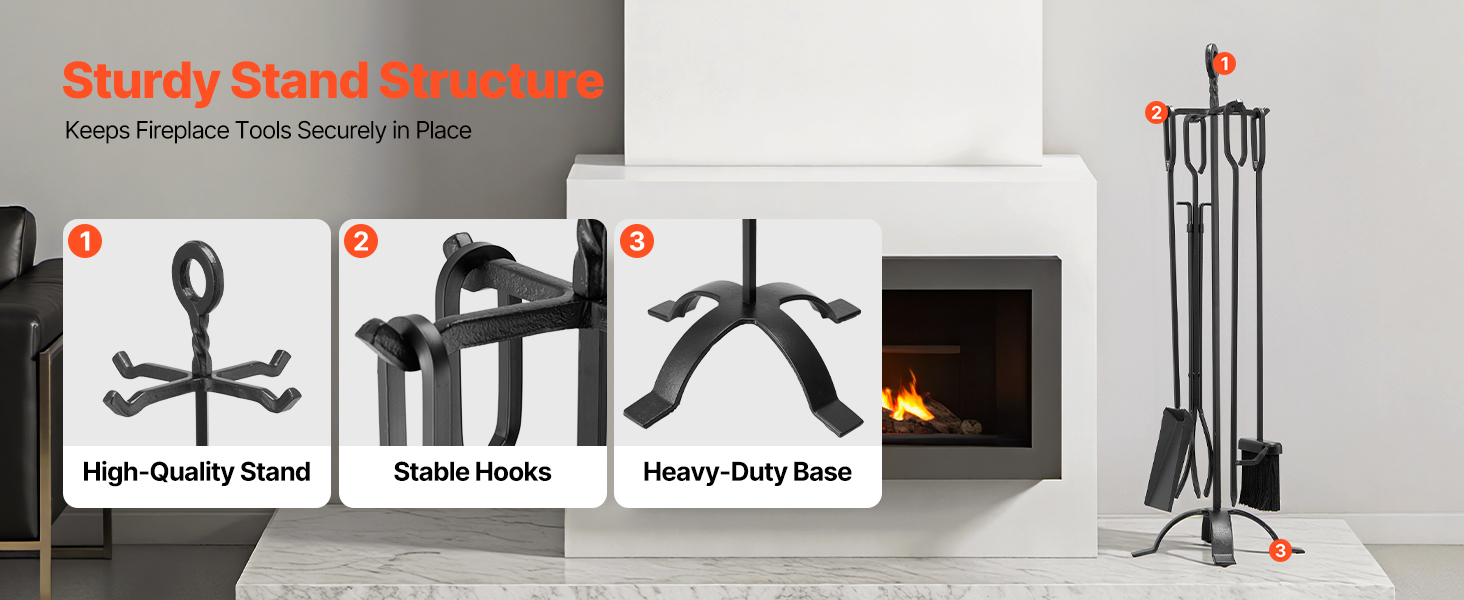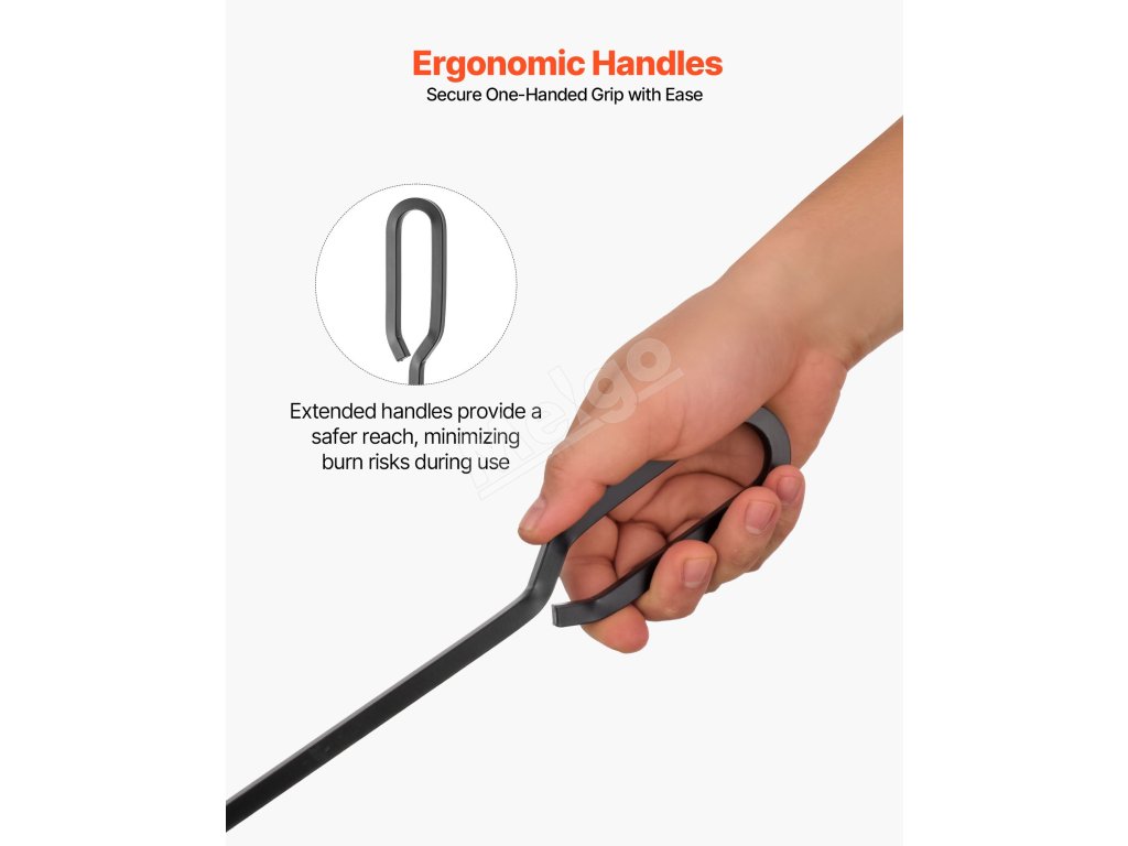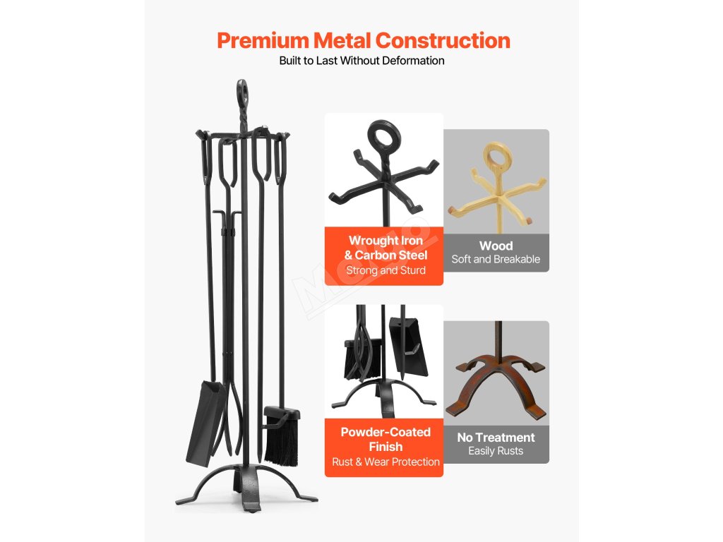 Táto súprava krbového náradia je vyrobená z prvotriedneho kovaného železa, uhlíkovej ocele a práškovej povrchovej úpravy a je odolná voči ohýbaniu, hrdzi a vysokým teplotám, čo zaručuje dlhodobú životnosť. Ergonomické predĺžené rukoväte poskytujú pohodlné uchopenie odolné voči teplu, ktoré je nevyhnutným pomocníkom pri používaní krbu.