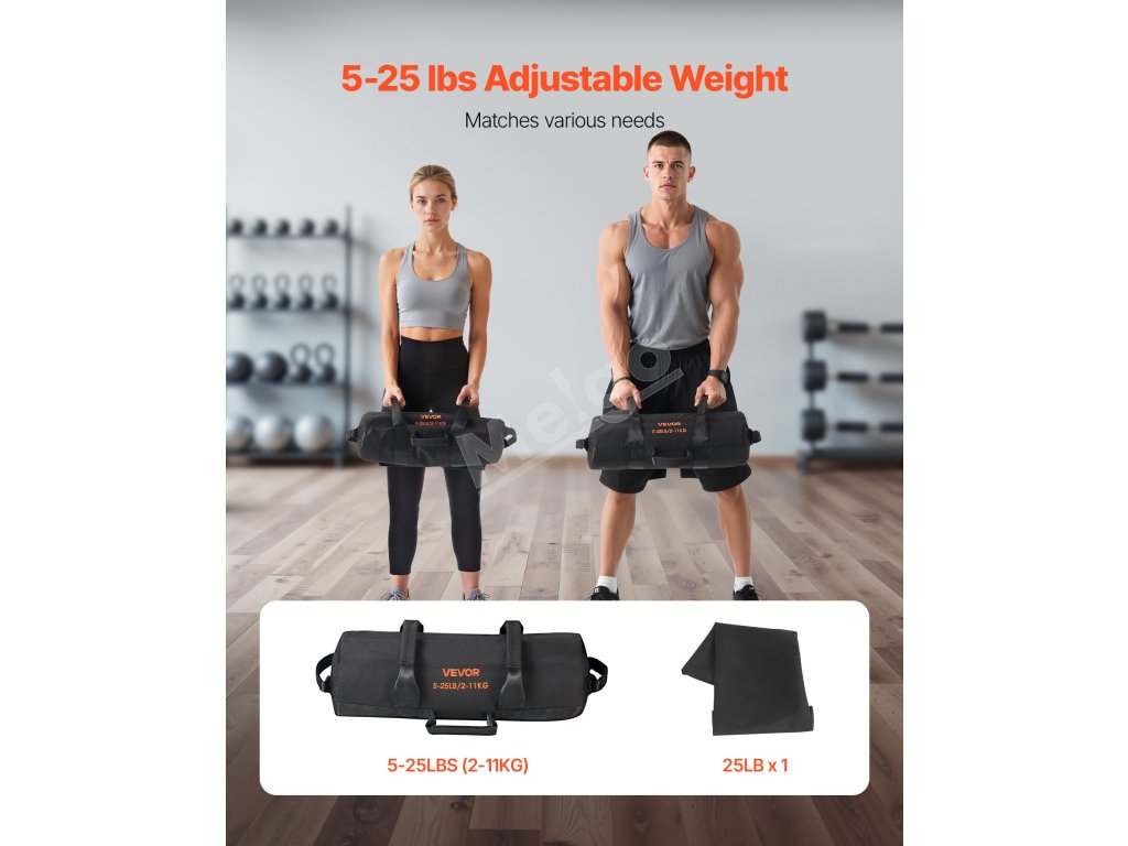 Pieskový vak na cvičenie 2–11 kg, nastaviteľný, s rúčkami, prázdny
