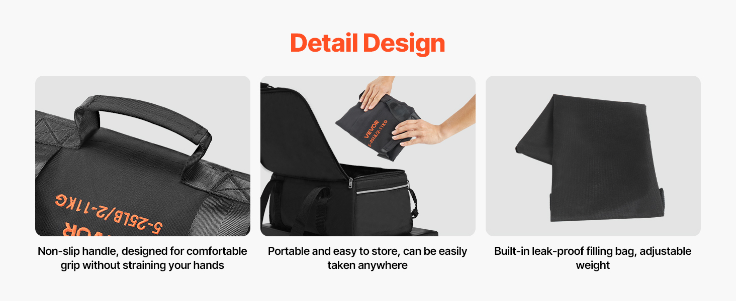 Toto fitness vrece na piesok je vybavené protišmykovými rukoväťami, nepriepustným plniacim vreckom a pohodlným dizajnom na skladovanie, čo zaručuje lepší zážitok z tréningu s vrecom na piesok.