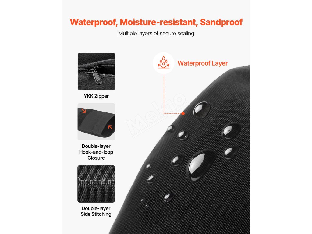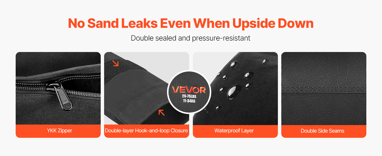 Toto nastaviteľné vrecko na piesok je vybavené zipsami YKK a ďalšími tesniacimi materiálmi odolnými voči tlaku, ktoré zaisťujú, že piesok neunikne ani pri intenzívnom kotúľaní, čím poskytuje dlhotrvajúcu ochranu pre váš tvrdý tréning.