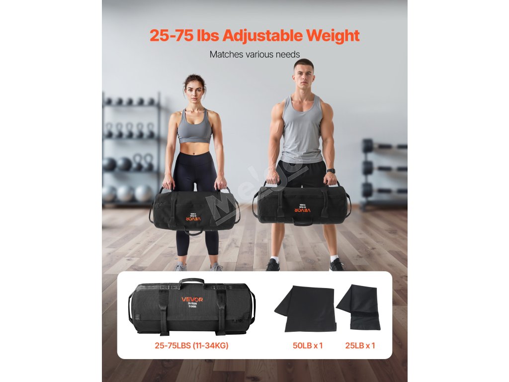 Pieskový vak s rukoväťami, nastaviteľný 11-34 kg, čierny, prázdny