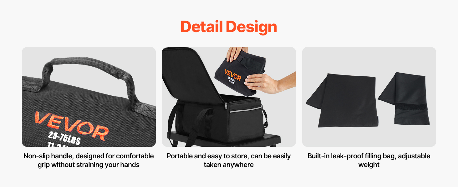Toto fitness vrece na piesok je vybavené protišmykovými rukoväťami, nepriepustným plniacim vreckom a pohodlným dizajnom na skladovanie, čo zaručuje lepší zážitok z tréningu s vrecom na piesok.