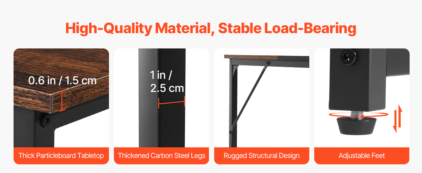 Hrubá doska z drevotrieskovej dosky a rám z uhlíkovej ocele odolný proti korózii podporujú dlhodobé používanie, zosilnená základňa a nastaviteľné nohy udržiavajú stôl stabilný s menším kolísaním.
