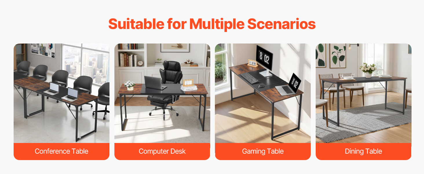 Použite ho ako počítačový stôl, kancelársky stôl, veľký rokovací stôl alebo herný stôl, minimalistický vzhľad sa dobre kombinuje s mnohými štýlmi interiéru pre domáce a kancelárske priestory.