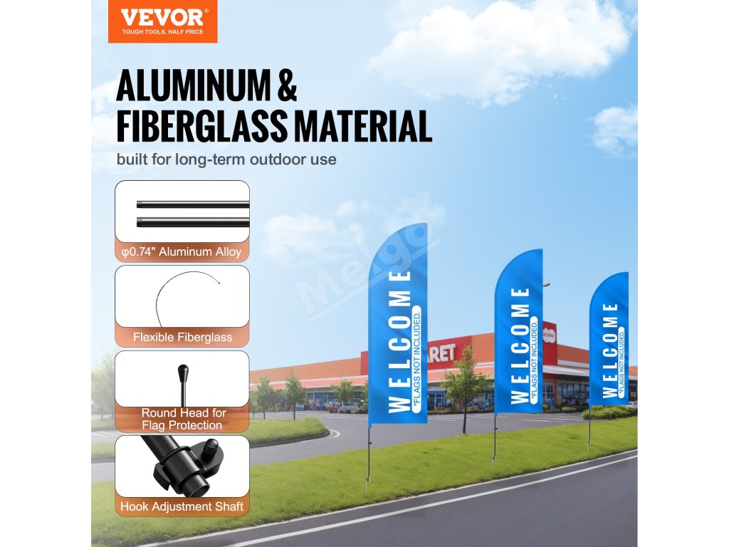 Sada praporných tyčí 2 ks, výška 12.7 ft, so zemnými kolíkmi a taškou