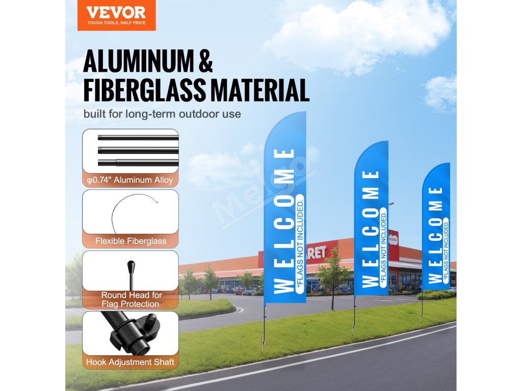 Súprava stožiarov na reklamnú vlajku 4 ks, 16.3 ft, s kolíkmi a obalom