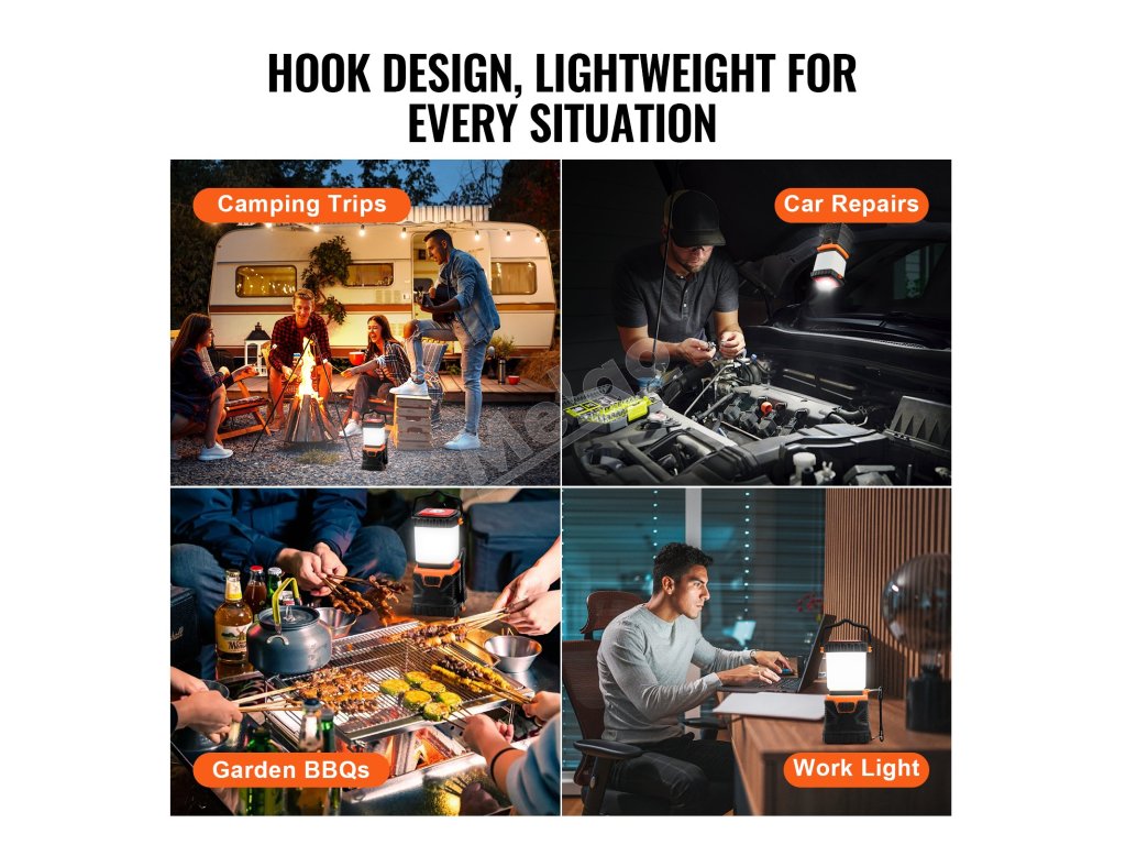 Vhodné na kempovanie, turistiku a pri výpadkoch prúdu. Naše prenosné kempingové svetlo je nevyhnutnou súčasťou outdoorových dobrodružstiev a zabezpečí vám spoľahlivé svetlo, nech už sa vydáte kamkoľvek. Vezmite si ho so sebou na ďalšie dobrodružstvo a už nikdy sa nemusíte obávať, že zostanete v tme.