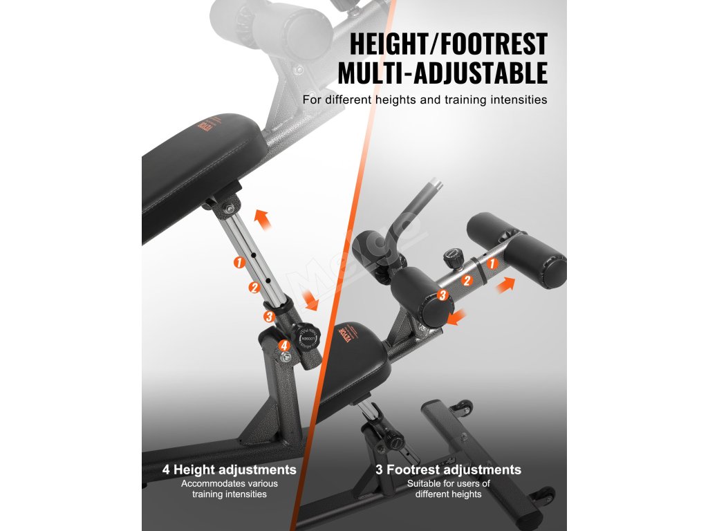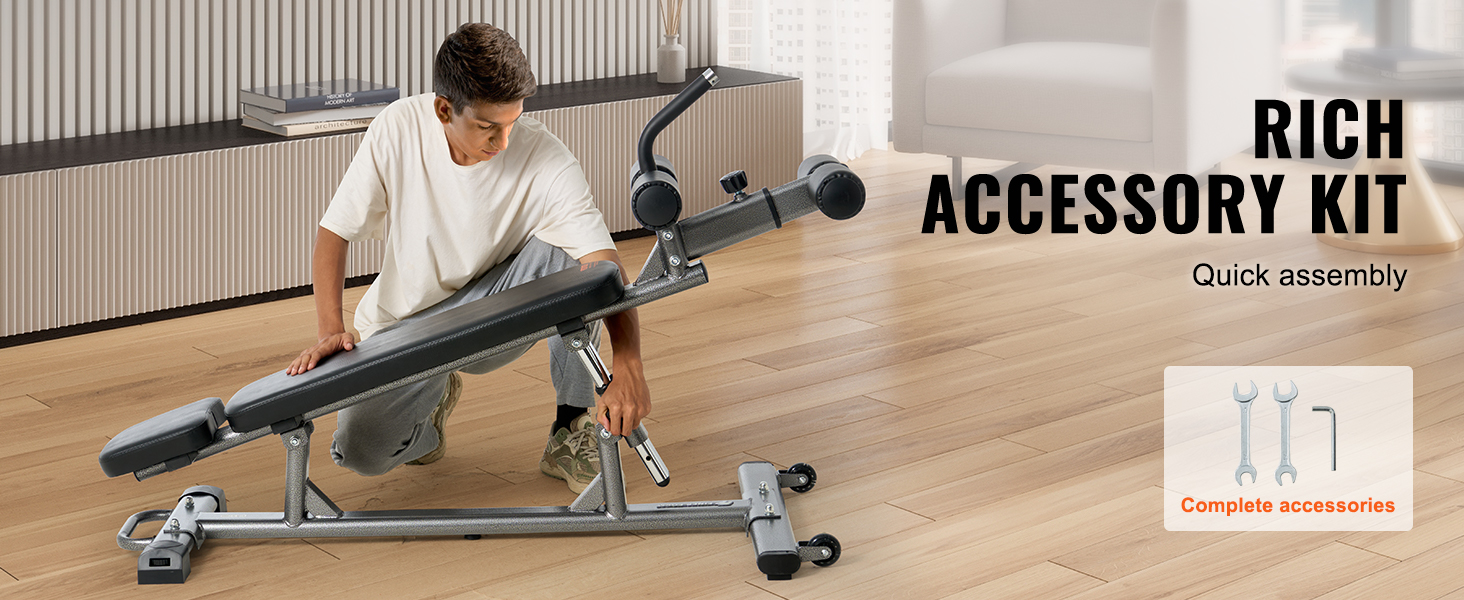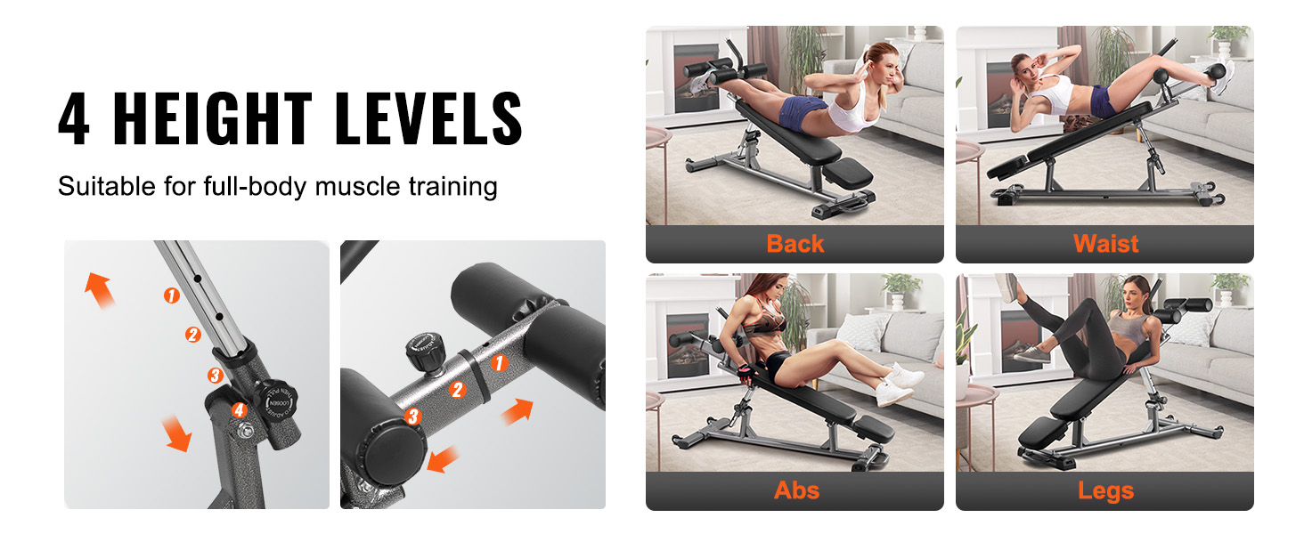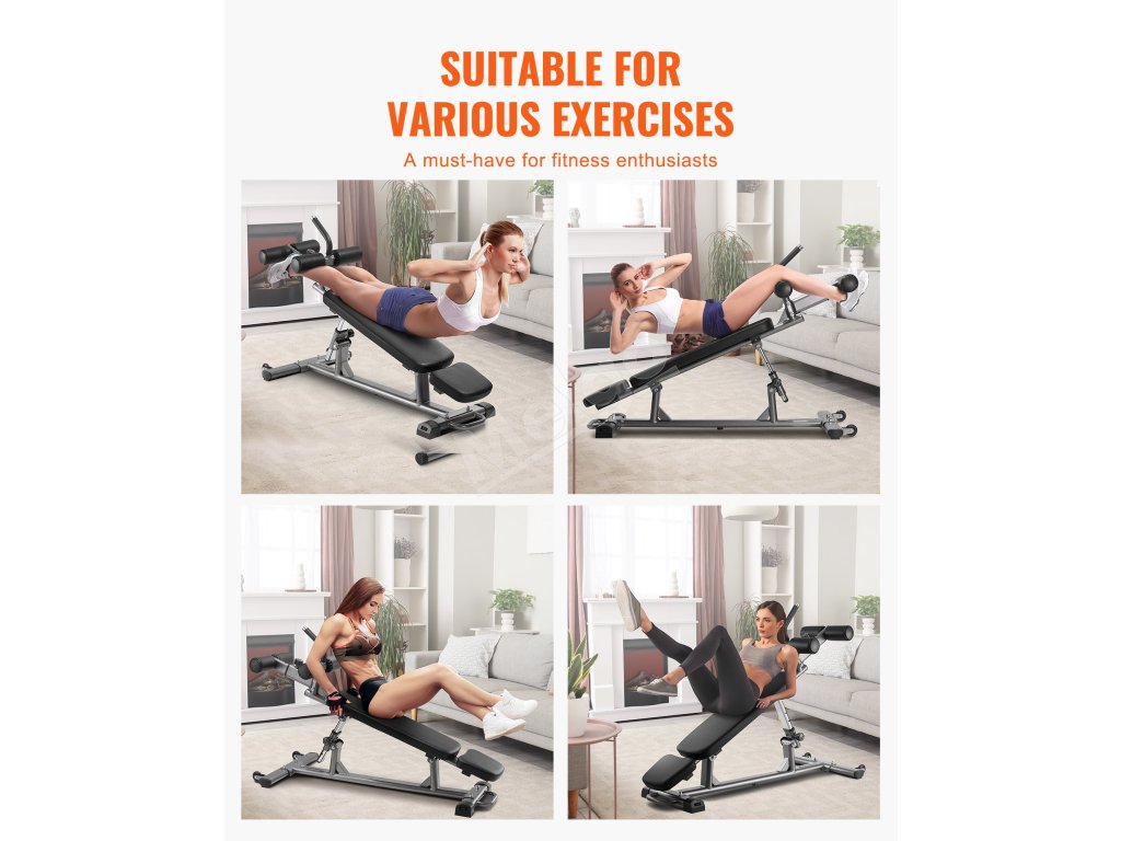 Vďaka viacerým nastaveniam výšky a nastaviteľnej dĺžke háku na nohy sa táto lavička na sedenie prispôsobí používateľom všetkých veľkostí pre rôzne úrovne intenzity. Zameriava sa na viaceré svalové skupiny na precvičenie celého tela, čo z nej robí všestranné a praktické fitnes zariadenie do každej domácej posilňovne.