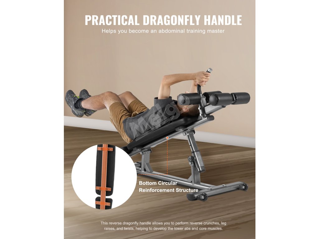Táto lavička na cvičenie v sede má nastaviteľnú výšku a oporu pre nohy, je vyrobená z trojuholníkového rámu z odolnej ocele pre veľkú stabilitu. Praktická rukoväť na opačné krčenie pomáha pri tréningu brušných svalov. Ľahko sa zostavuje a je ideálnou voľbou pre začiatočníkov aj skúsených fitnes nadšencov.