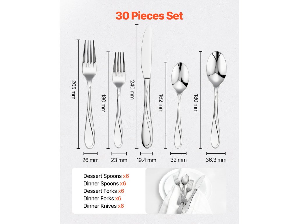 Sada príborov 30 ks, nerez, lesklé, do umývačky riadu, pre 6 osôb