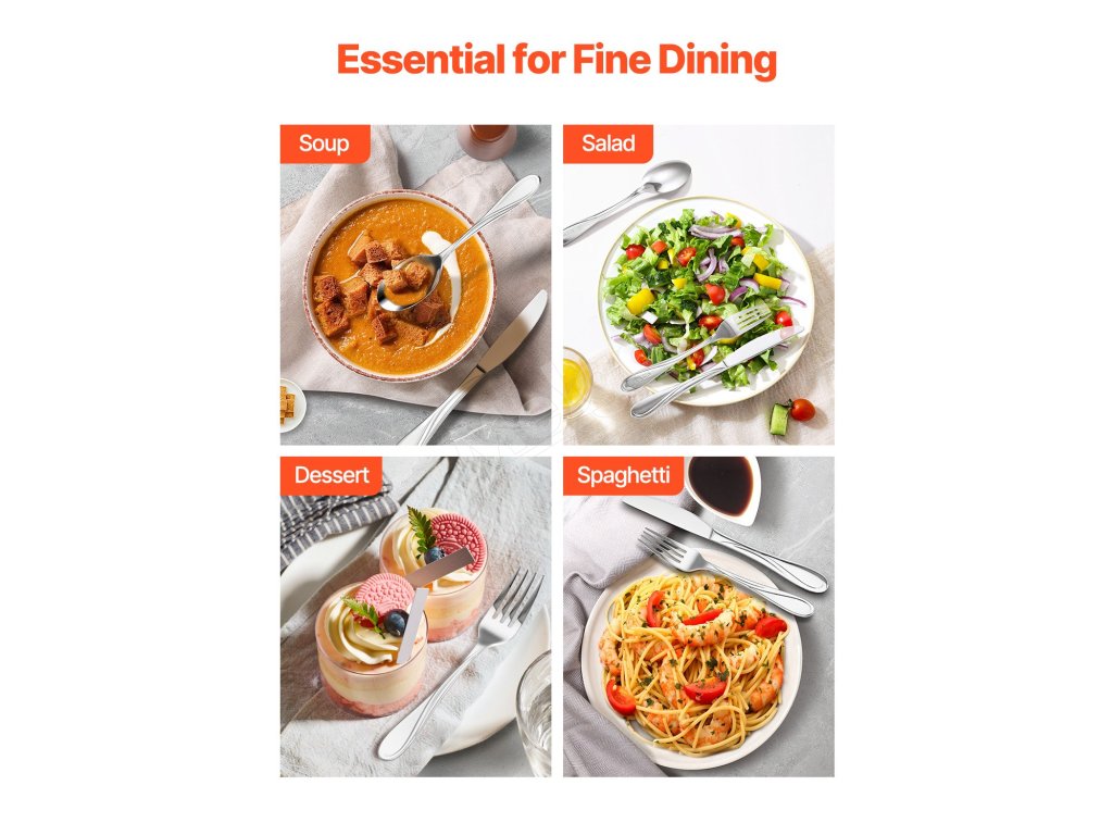 Špičková súprava príborov, ktorá je nevyhnutná na domáce aj reštauračné použitie. Či už ide o každodenné stolovanie, prípravu jedál alebo organizovanie večierkov, táto súprava príborov je nepostrádateľným nástrojom pri každej príležitosti stolovania.