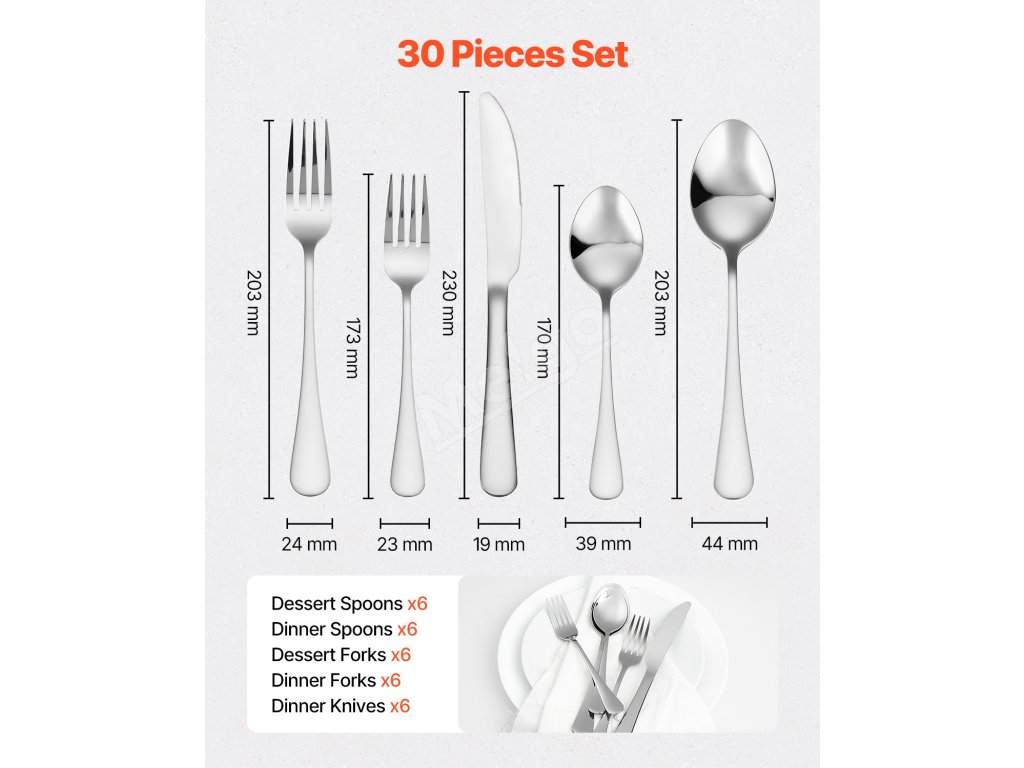 Súprava príborov 30 ks nerez, lesklá, do umývačky pre 6 osôb