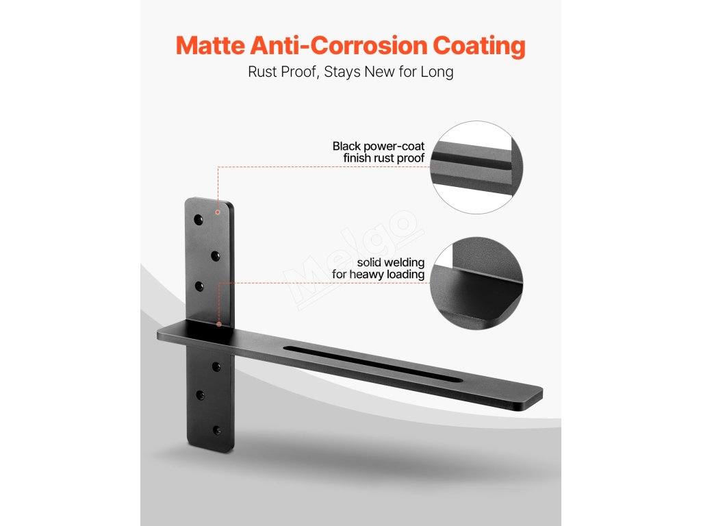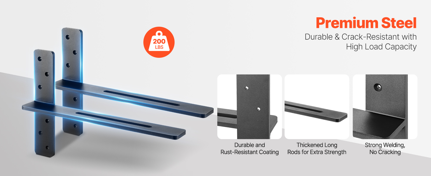 Tieto dekoratívne konzoly na police sú vyrobené z vysokokvalitnej ocele a unesú až 200 kg. Náter odolný proti korózii zvyšuje odolnosť, zatiaľ čo zosilnené tyče a zosilnené zváranie zabezpečujú pevnosť bez praskania.