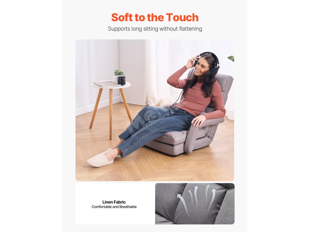 Táto skladacia stolička na podlahu je vyrobená z mäkkej peny s vysokou hustotou, ktorá poskytuje vynikajúcu oporu a odpruženie a zároveň sa rýchlo vracia do pôvodného tvaru. Jeho mäkkosť a pohodlie pripomínajú jemné objatie, takže je ideálnou voľbou na čítanie, prácu alebo odpočinok.