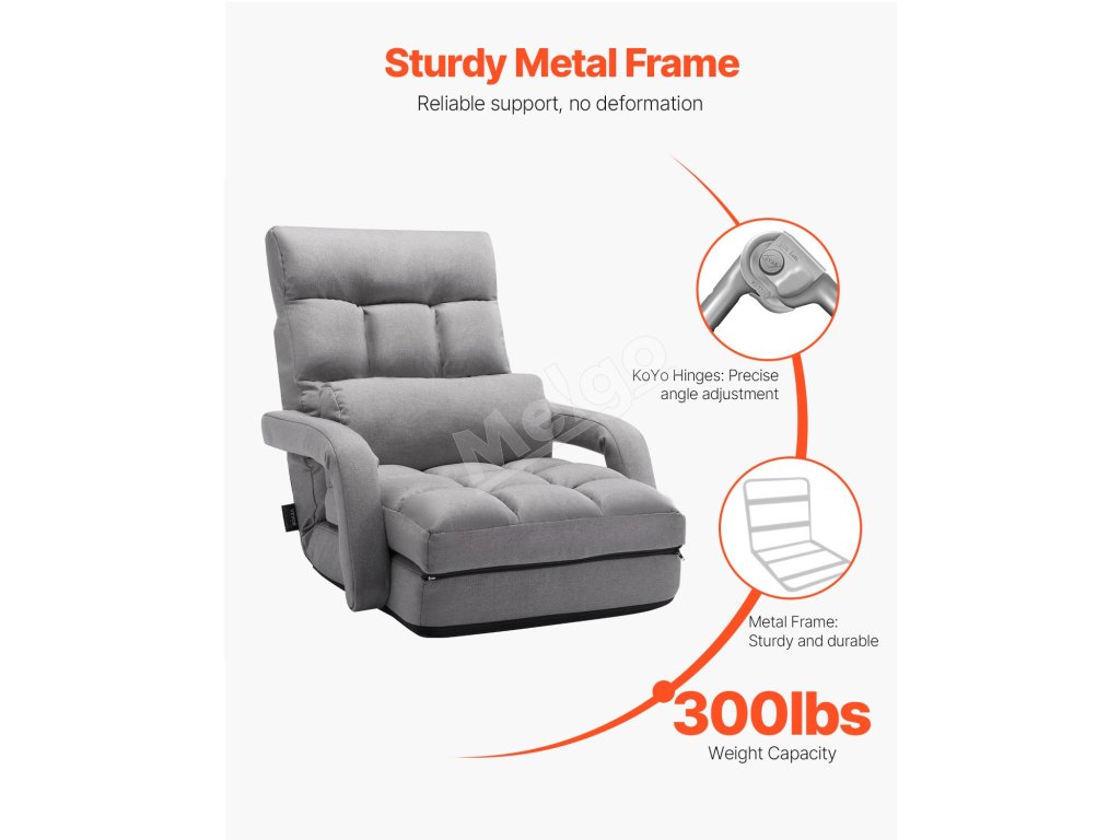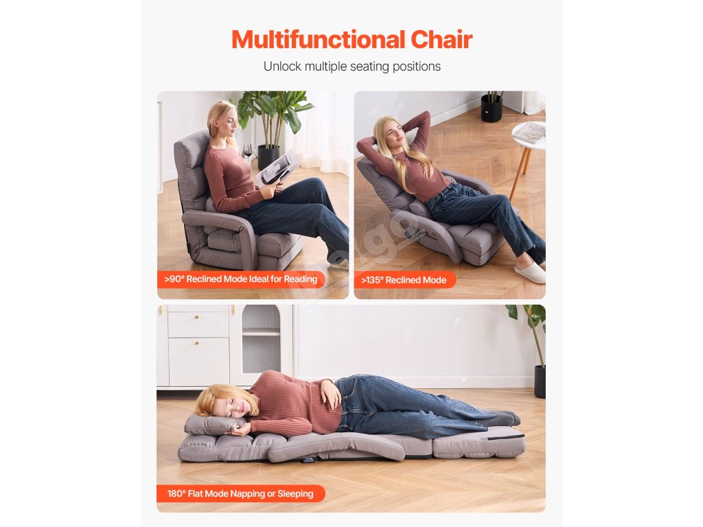 Toto skladacie podlahové kreslo je nielen skladacie na úsporné uskladnenie pri stene, ale po rozložení môže aj ležať na plocho, takže sa ľahko zmestí pod posteľ alebo pohovku bez toho, aby zaberalo ďalšie miesto. Vyhovuje potrebám rôznych používateľov na uskladnenie.