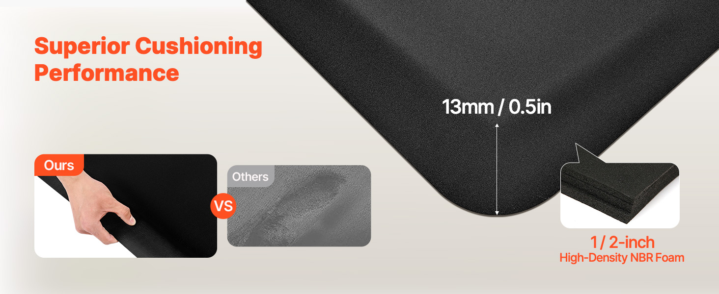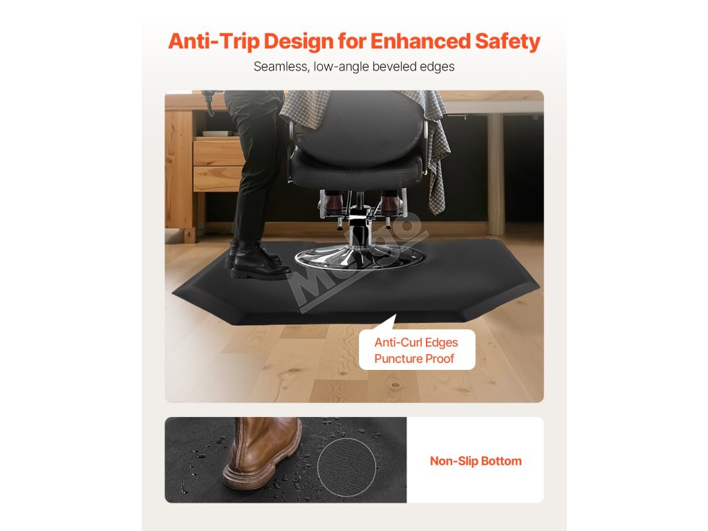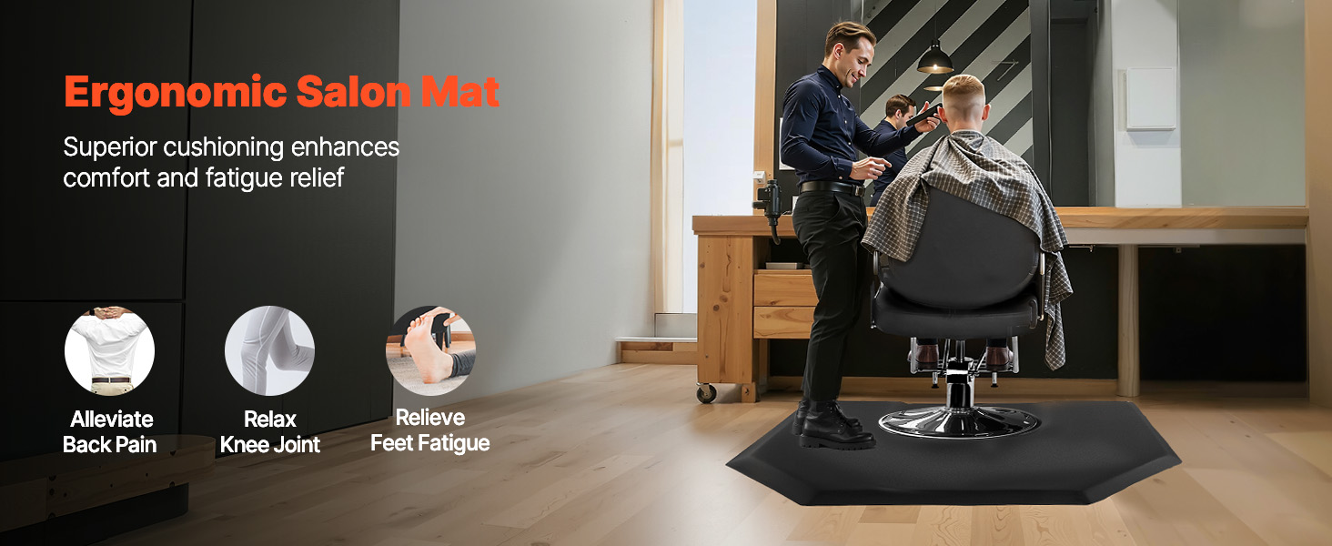 Táto rohož do kaderníctva je vyplnená 13 mm hrubou penou NBR, ktorá ponúka vynikajúcu oporu a vankúš, ktorý pomáha zmierniť tlak pri dlhšom státí. Znižuje únavu chodidiel, kolien, nôh a chrbta a poskytuje pohodlie počas celého pracovného dňa.