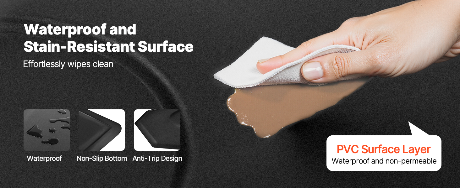 Povrch rohože je vyrobený z PVC materiálu, je vodoodolný a ľahko sa čistí. Je odolná voči škvrnám od farby na vlasy a oleja a možno ju ľahko utrieť. Vďaka skoseným okrajom proti pošmyknutiu, protišmykovej spodnej časti a odolnosti proti prepichnutiu a pokrčeniu zaručuje bezpečnosť a trvanlivosť.