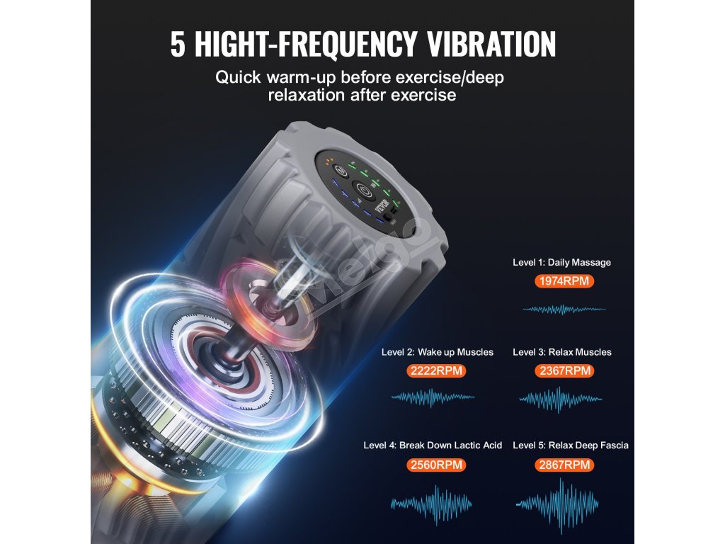 Vibračný penový valec 16" nabíjateľný 5 rýchlostí 3 režimy eva