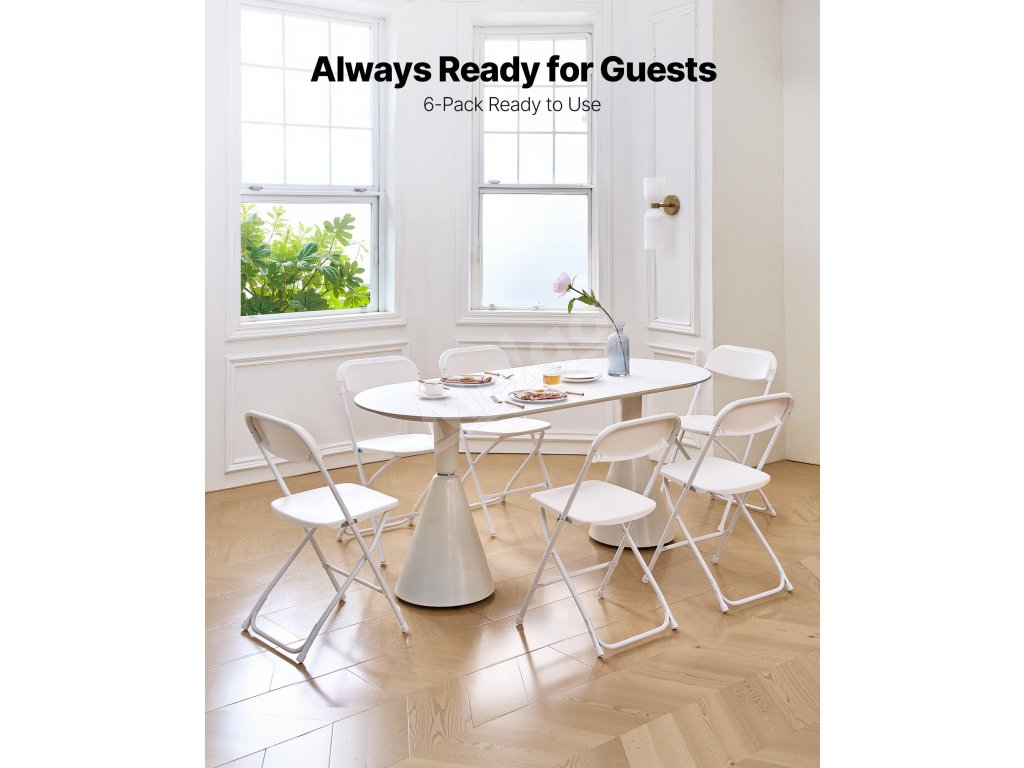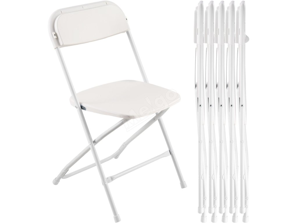 Skladacie stoličky 6 ks, plastové sedadlá, pevný kovový rám, biele