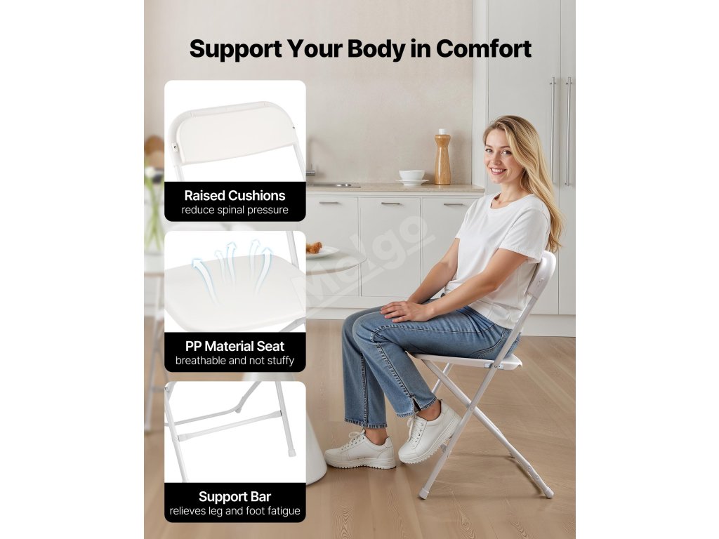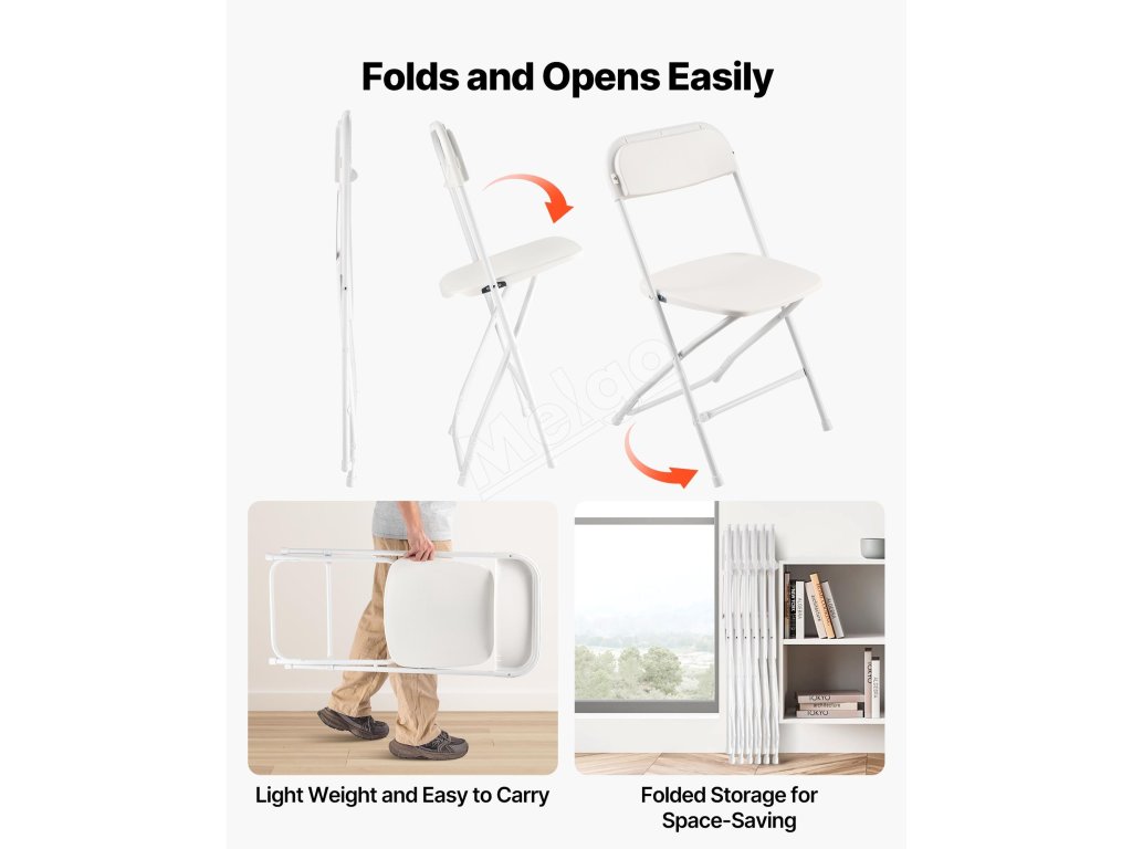 Elegantný a štýlový dizajn doplní akýkoľvek interiér, zatiaľ čo ľahká prenosnosť spĺňa pohodlné sedenie - ideálne ako záložné stoličky na domáce alebo komerčné podujatia.