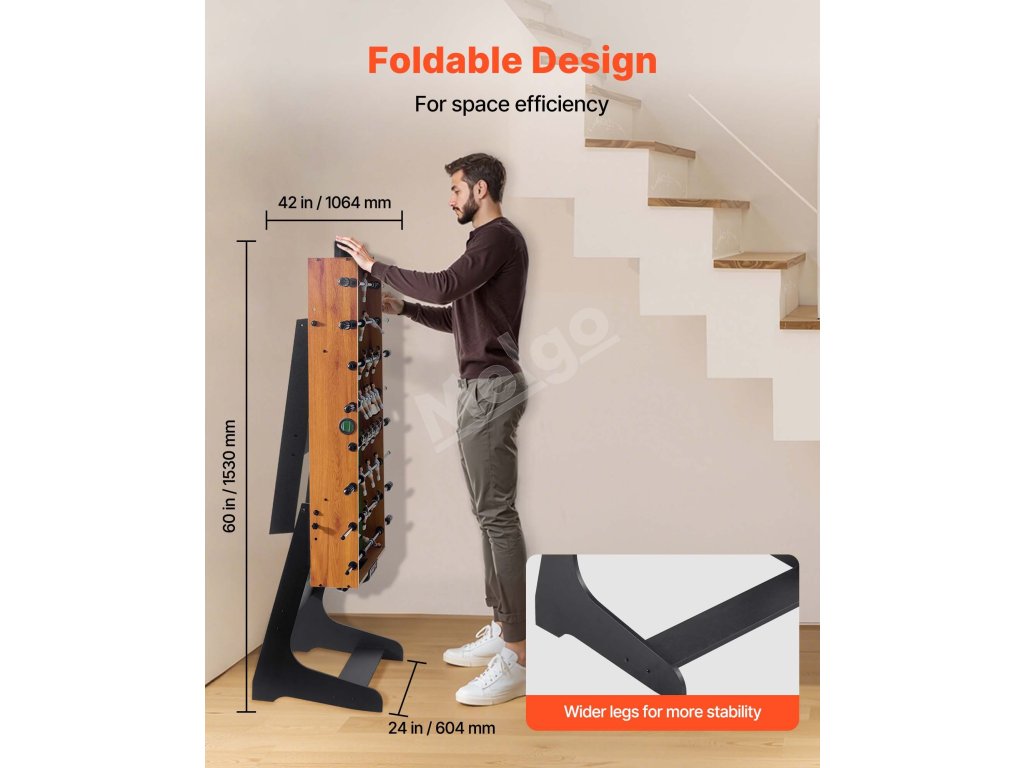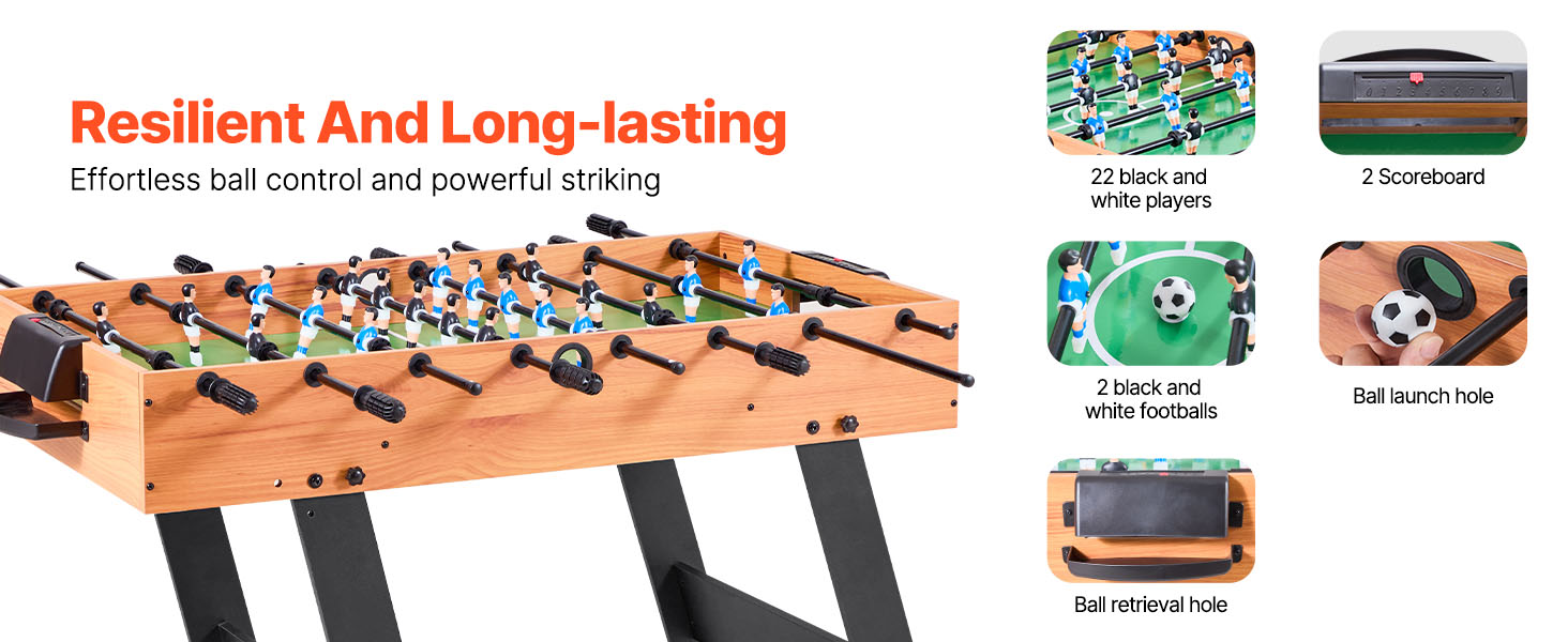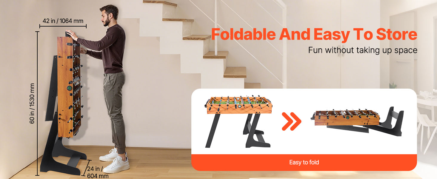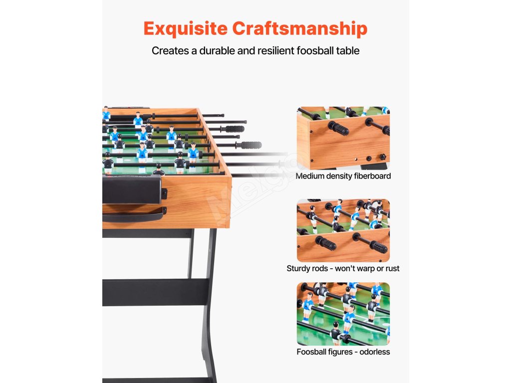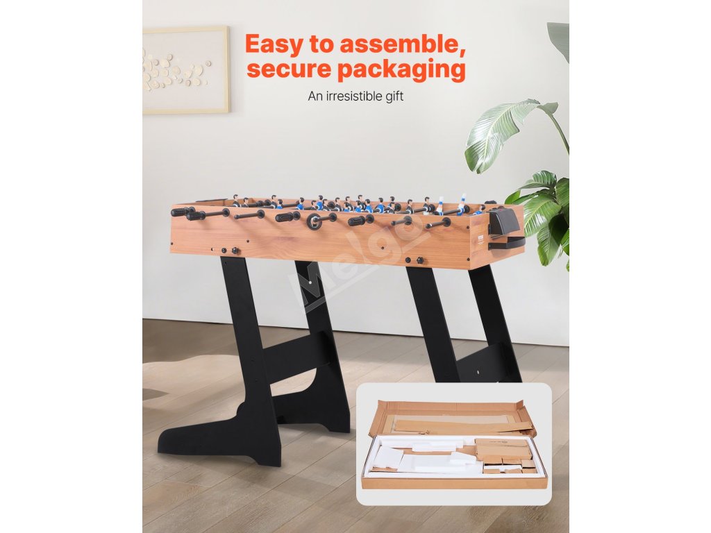 Náš stolný futbal je skladací, ideálny na skladovanie a prepravu. Hodí sa do vašej pivnice, herne alebo bytu ako stolová hra. Nemusíte sa obávať poškodenia obalu, vďaka čomu sa stane cenným darčekom pre vašich blízkych priateľov a rodinu.