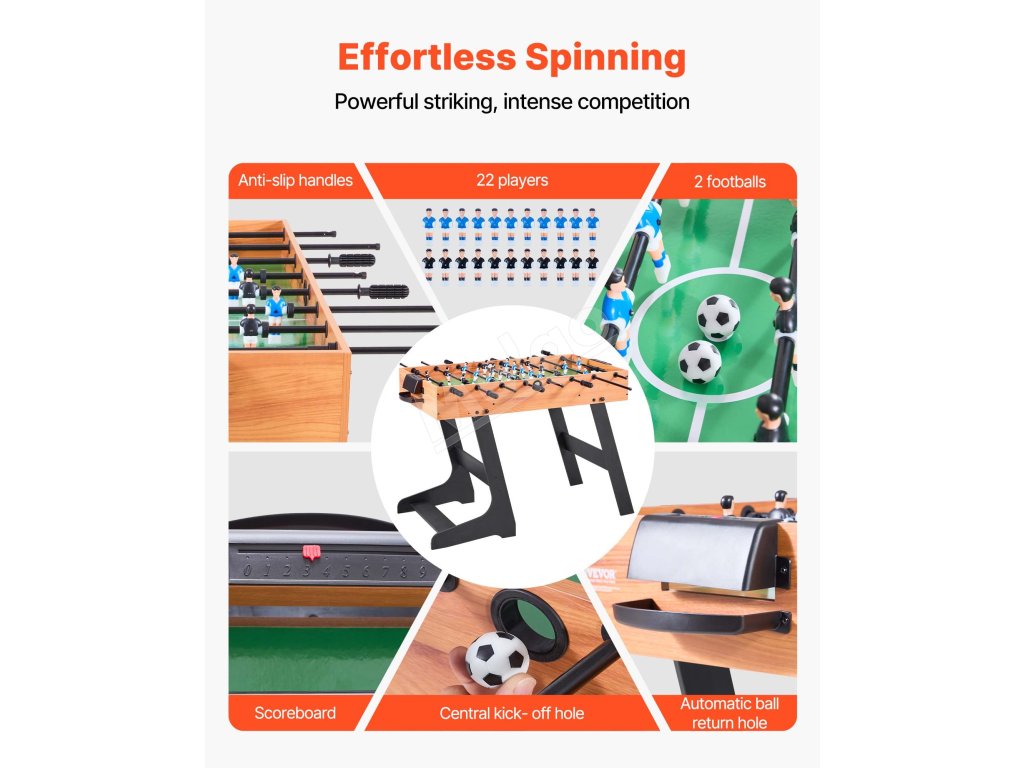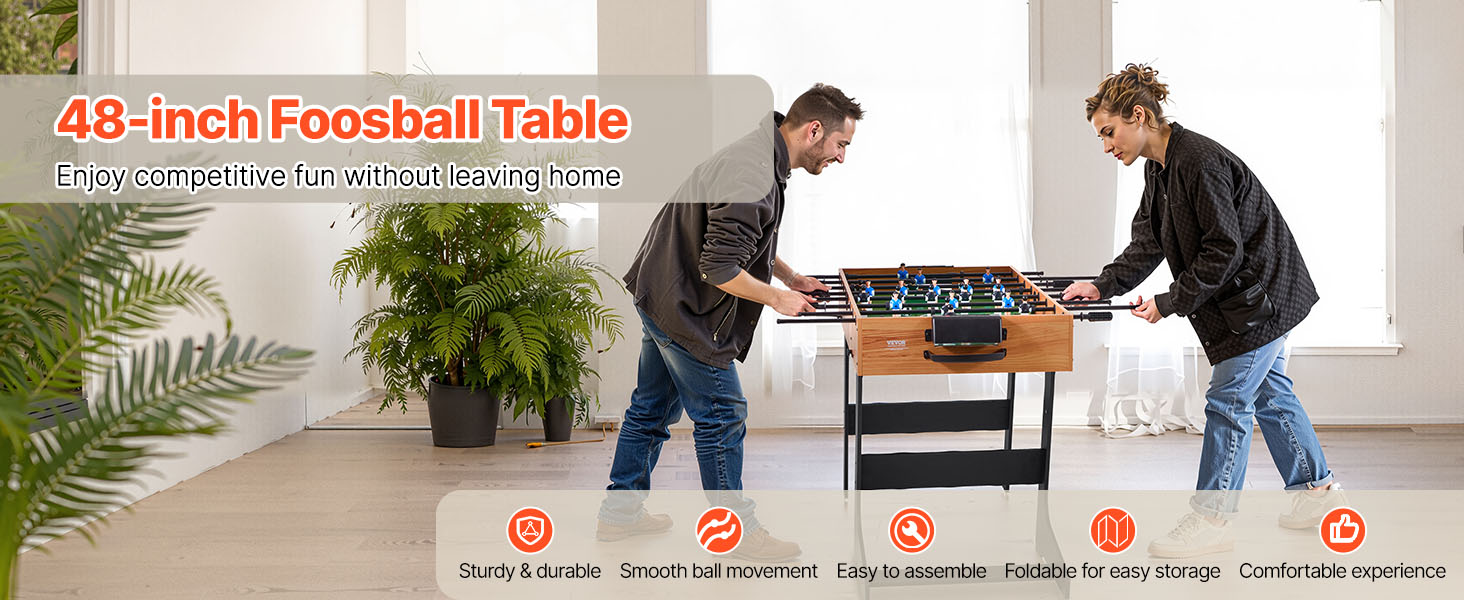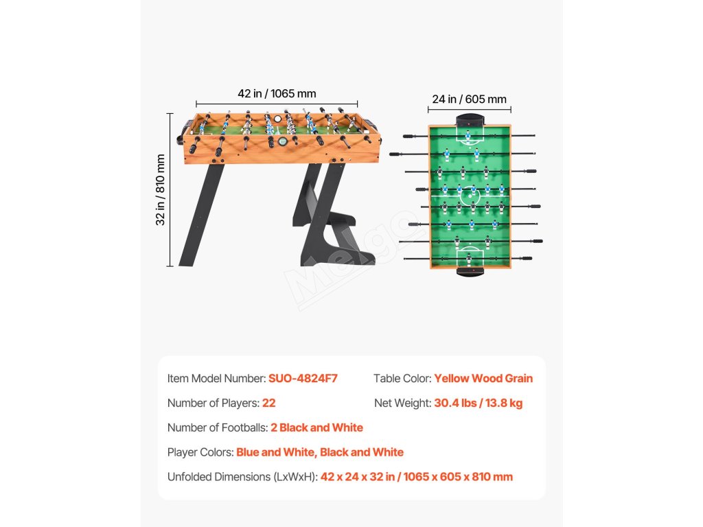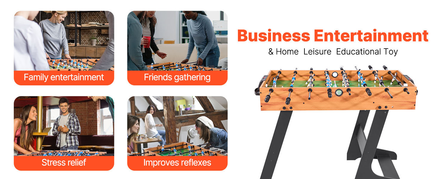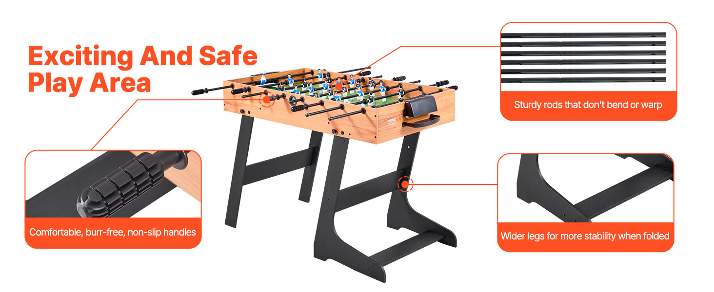 Náš stolný futbal je skladací, ideálny na skladovanie a prepravu. Hodí sa do vašej pivnice, herne alebo bytu ako stolová hra. Nemusíte sa obávať poškodenia obalu, vďaka čomu sa stane cenným darčekom pre vašich blízkych priateľov a rodinu.