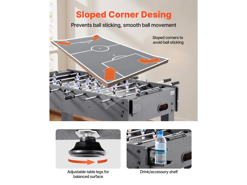 Naše stolíky na stolný futbal sa jednoducho montujú, čo znamená, že rodinné herné večery a barové turnaje sa môžu začať okamžite!