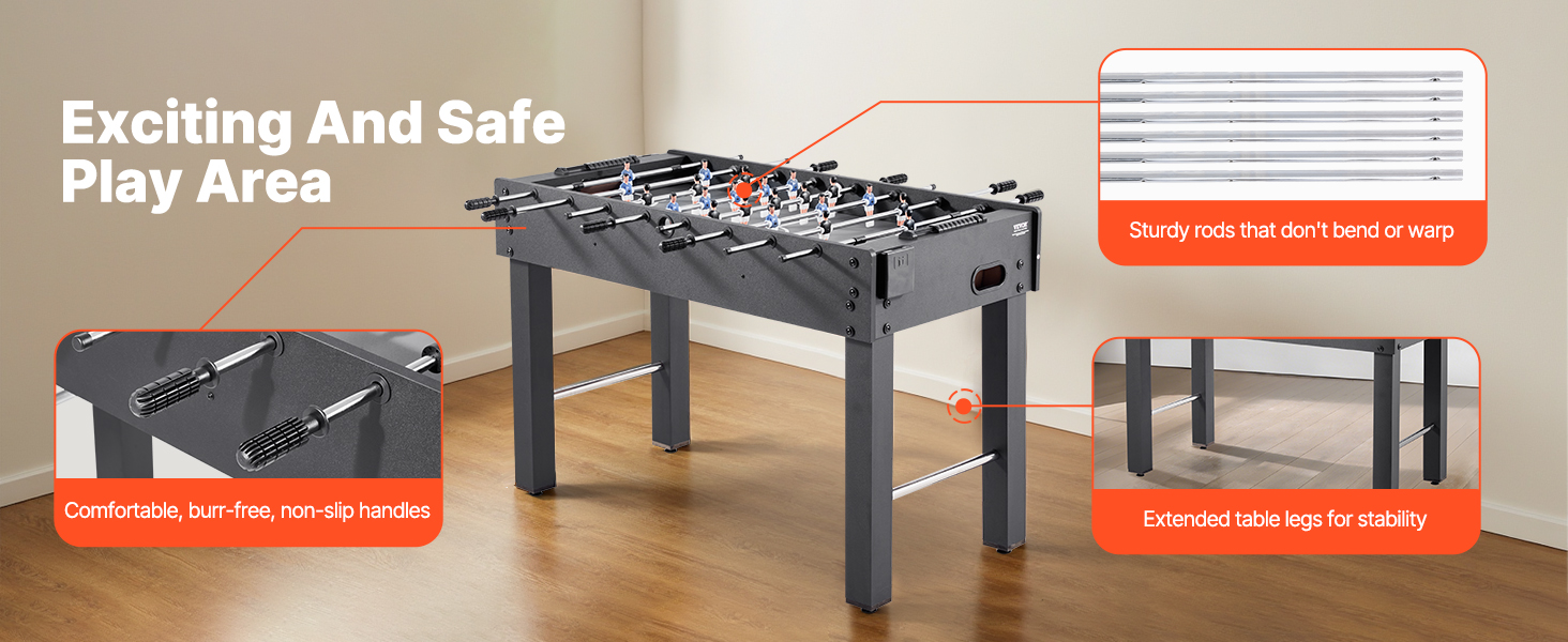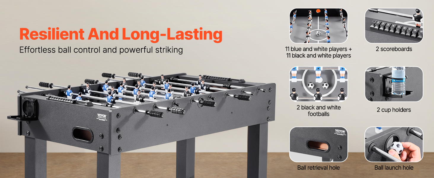 Klasický dizajn a farebné prevedenie sa hodia do každého domáceho prostredia, zapadnú do pivnice, herne alebo bytu ako stolová hra. Nemusíte sa obávať poškodenia obalu, vďaka čomu je náš stolný futbal cenným darčekom pre vašich blízkych priateľov a rodinu.