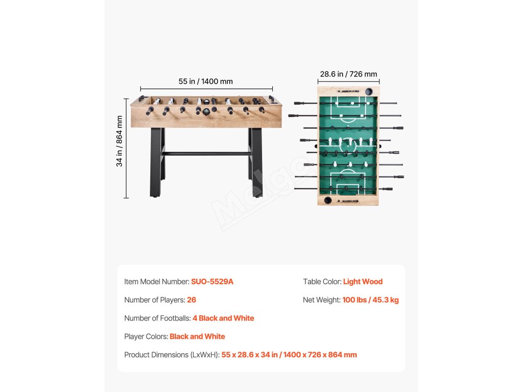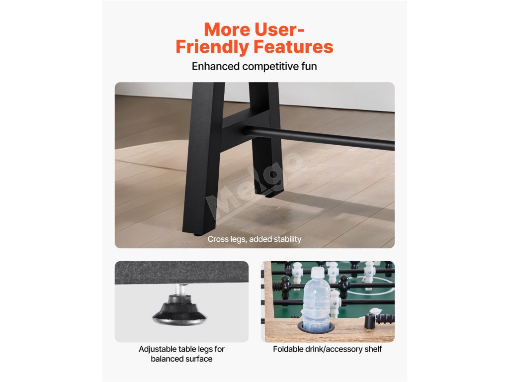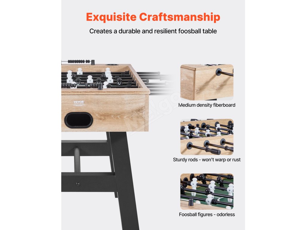 Klasický dizajn a farebné prevedenie sa hodia do každého domáceho prostredia, zapadnú do pivnice, herne alebo bytu ako stolová hra. Nemusíte sa obávať poškodenia obalu, vďaka čomu je náš stolný futbal cenným darčekom pre vašich blízkych priateľov a rodinu.