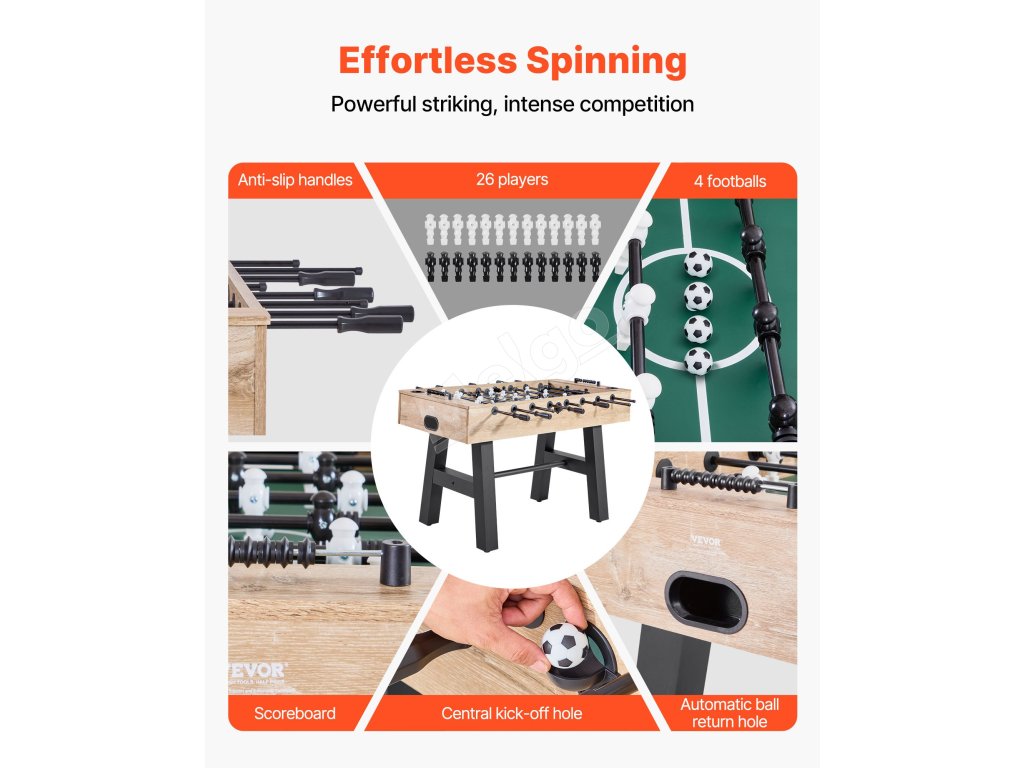 Naše stolíky na stolný futbal sa jednoducho montujú, čo znamená, že rodinné herné večery a barové turnaje sa môžu začať okamžite!