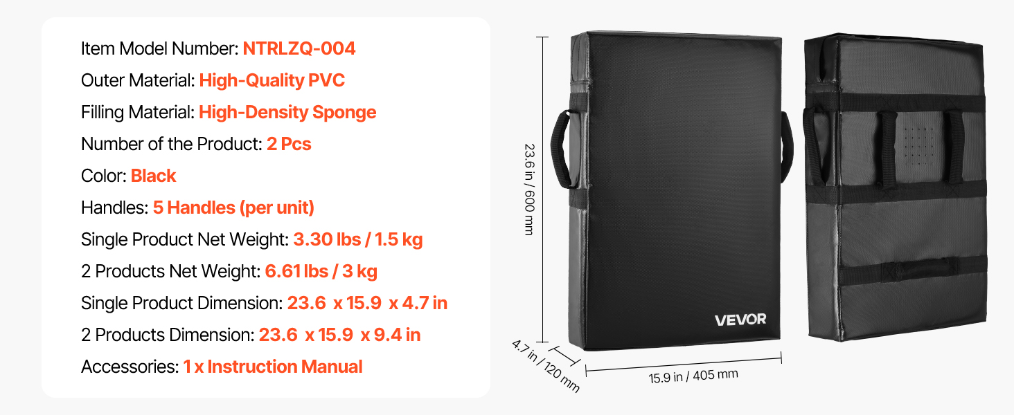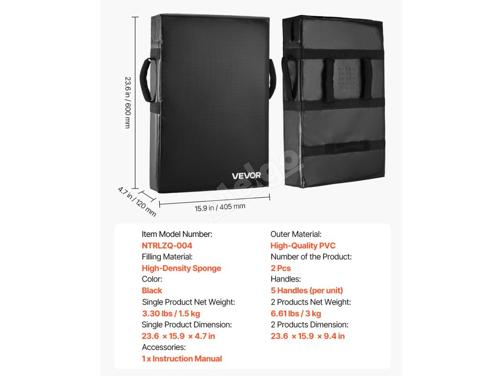 Blokovací štít na tréning s úchytmi 24×16 in, hustá pena 2 ks, čierny