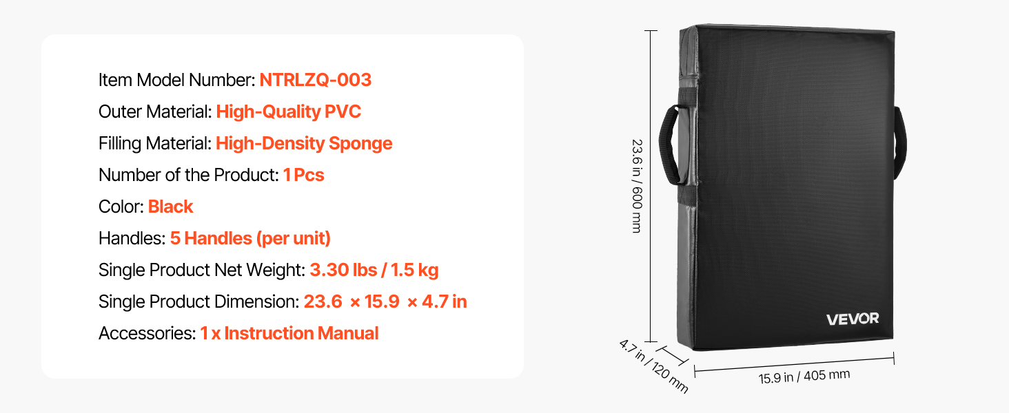 Blokovací terč s rukoväťami 24×16 in, pena s vysokou hustotou