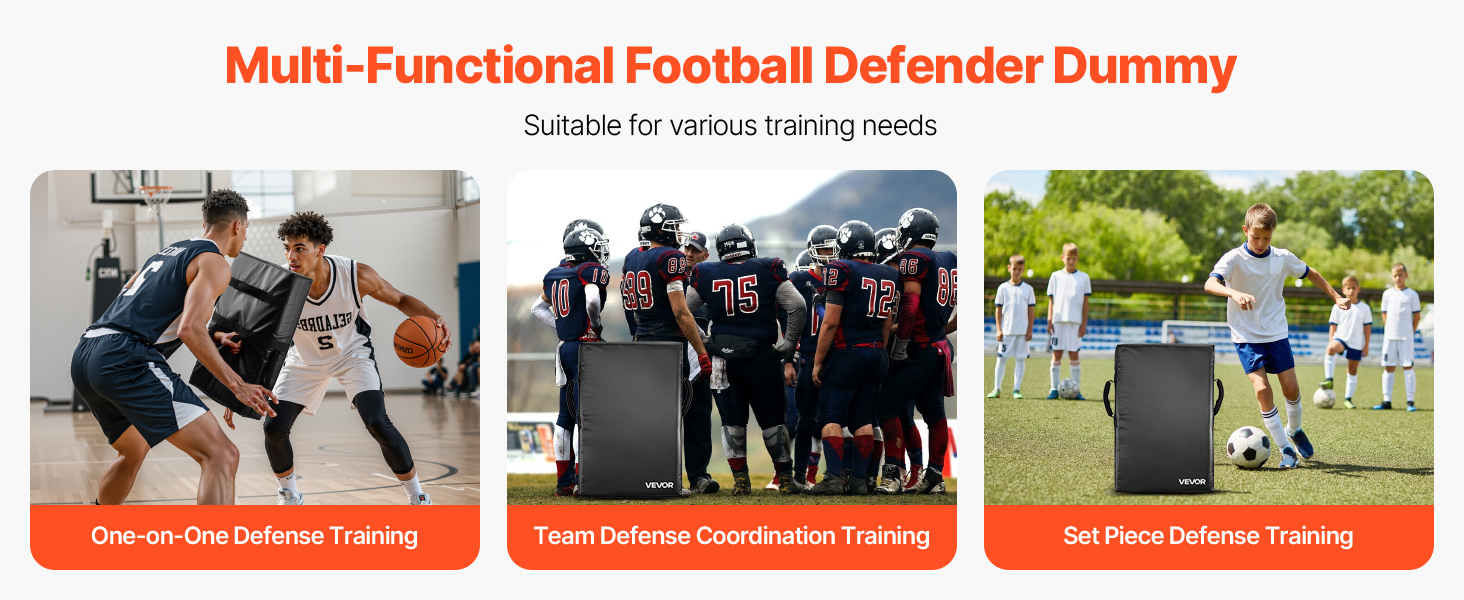 Futbalová blokovacia figurína na tréning je vyrobená z PVC materiálu, ktorý sa vyznačuje vodeodolným, ľahko čistiteľným odolným vonkajším plášťom, vďaka čomu si športovci môžu užívať kvalitný tréning v akýchkoľvek poveternostných podmienkach.