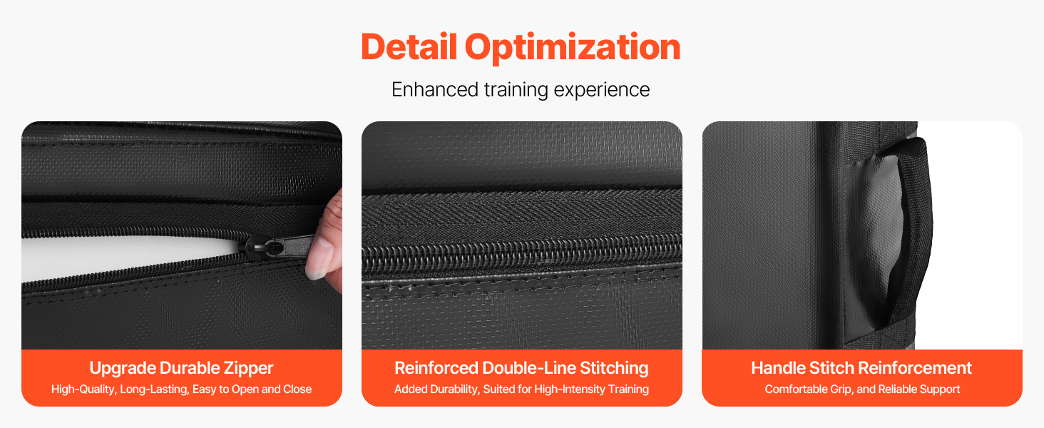Tréningová figurína má výrazne zvýšenú odolnosť a pohodlie vďaka detailom, ako je odolný zips, proces dvojradového šitia a zosilnená rukoväť, čo výrazne zlepšuje celkový zážitok z tréningu.
