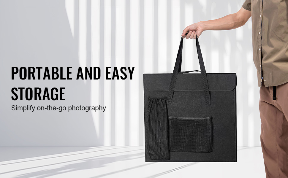 Vychutnajte si maximálne pohodlie s naším fotoštúdiovým svetelným boxom, ktorý sa bez námahy ukladá do kompaktnej veľkosti, ktorá sa pohodlne zmestí do prenosnej tašky. Ideálny pre fotografov na cestách, ktorý vám zaručí, že budete vždy pripravení zachytiť úžasné snímky v akomkoľvek prostredí.