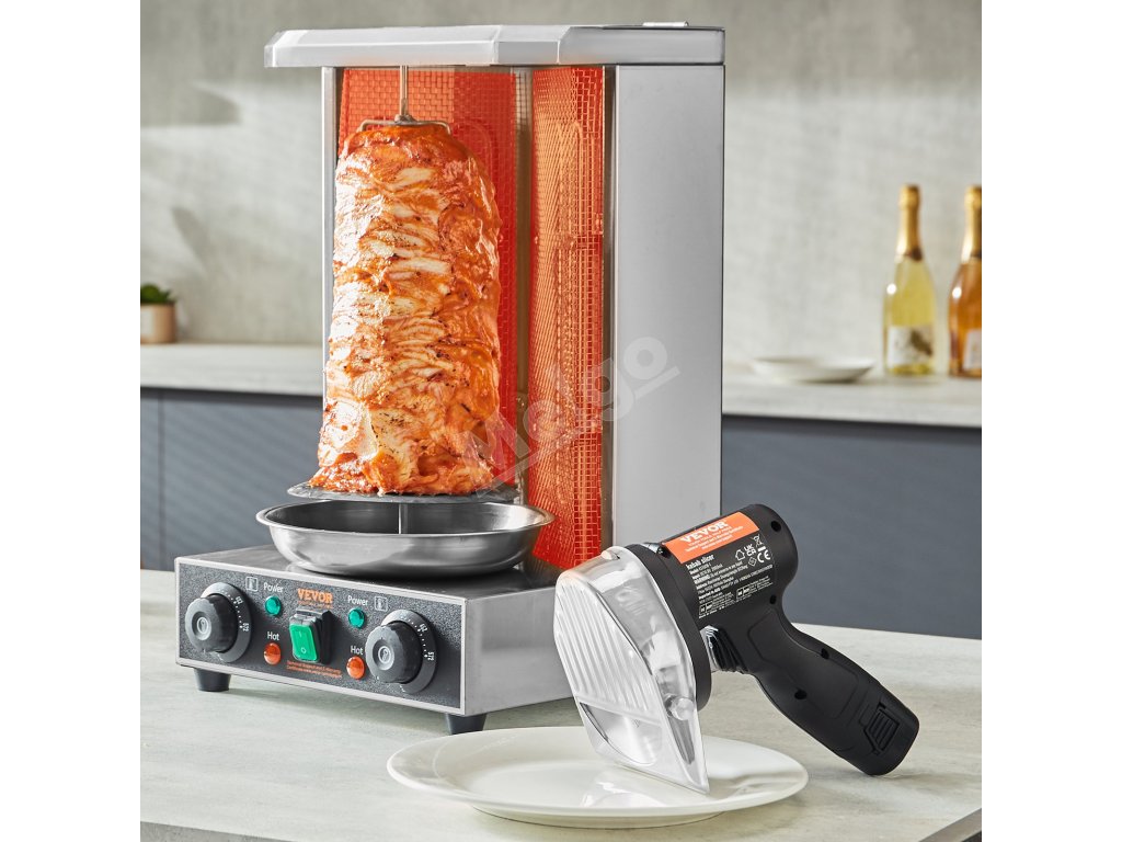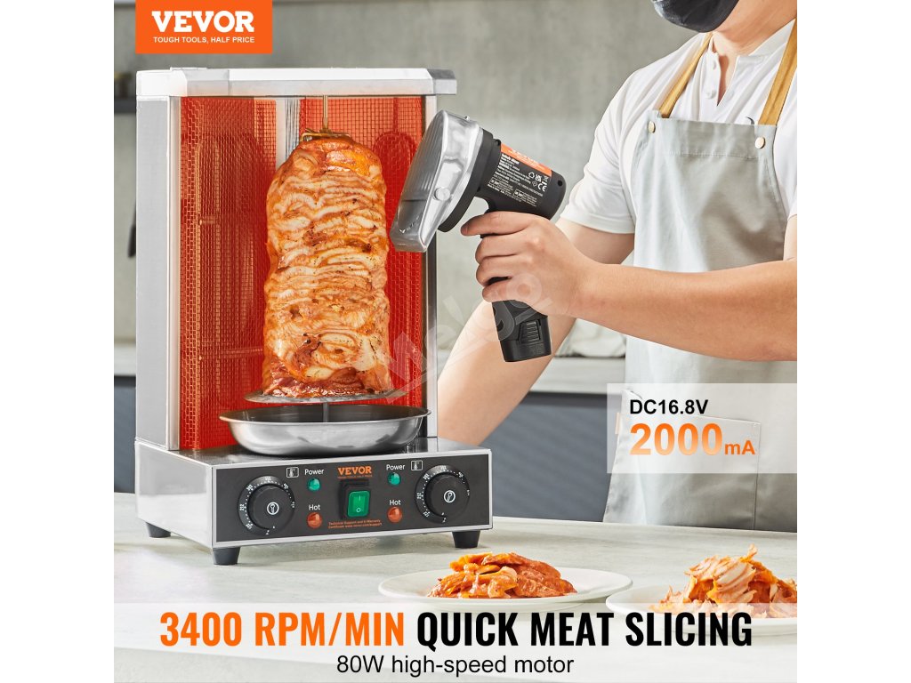 Nôž na šawarmu je vybavený účinným 80W motorom na vysokorýchlostné krájanie mäsa, ktorý pozdvihne vašu produktivitu na novú úroveň a ušetrí vám drahocenný čas na prípravu jedla.