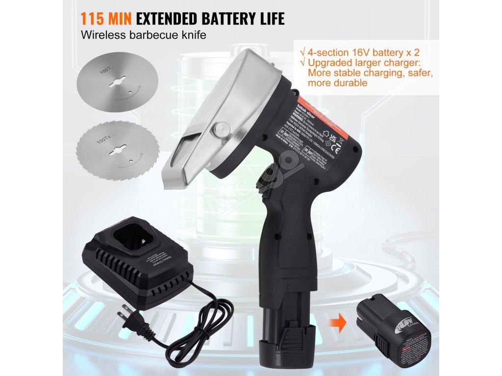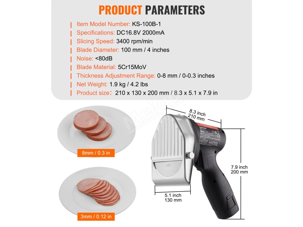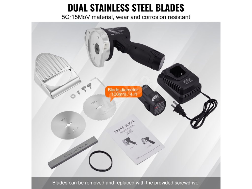 Elektrický batériový nôž na šavarmu 80W Φ4"/100mm nerez 2 čepele 0-8mm