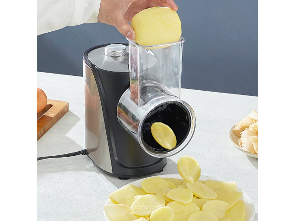 Elektrický krájač a strúhač zeleniny a syra, 250W, 5 nástavcov, nerez