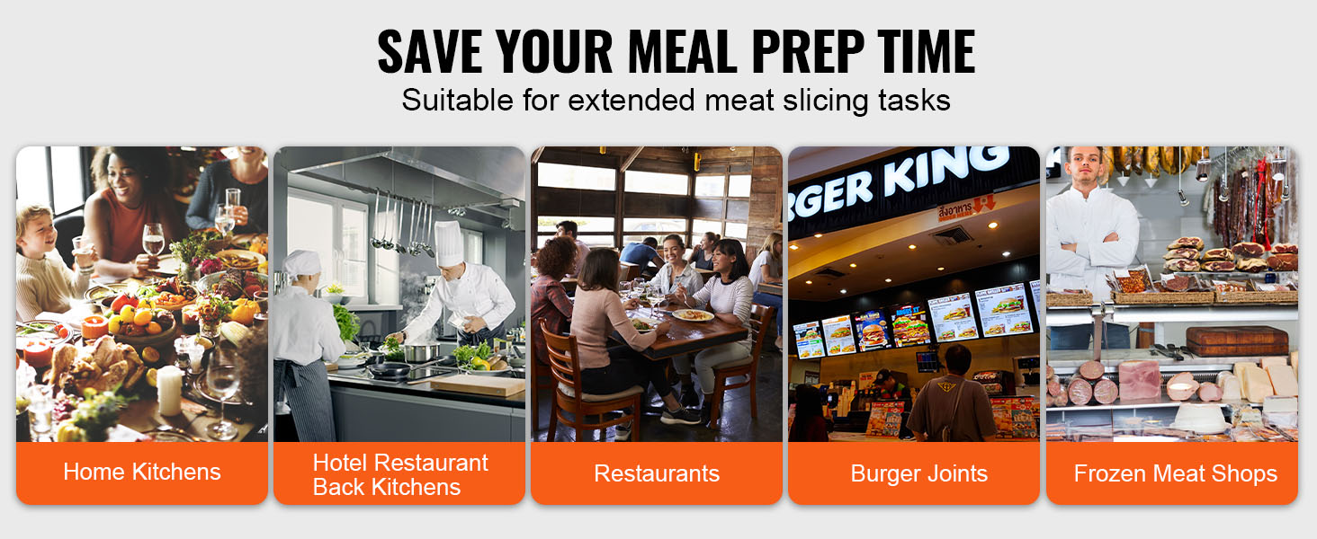 Vylepšený elektrický krájač potravín je vybavený 10" rozšírenou čepeľou a nastaviteľnou hrúbkou 0-15 mm / 0-0,6 palca. Môžete si ho nastaviť podľa svojich potrieb, čo vám umožní bez námahy vytvárať doma chutné pokrmy, ako sú hamburgery, sendviče, údeniny, ovocné misy a ďalšie.