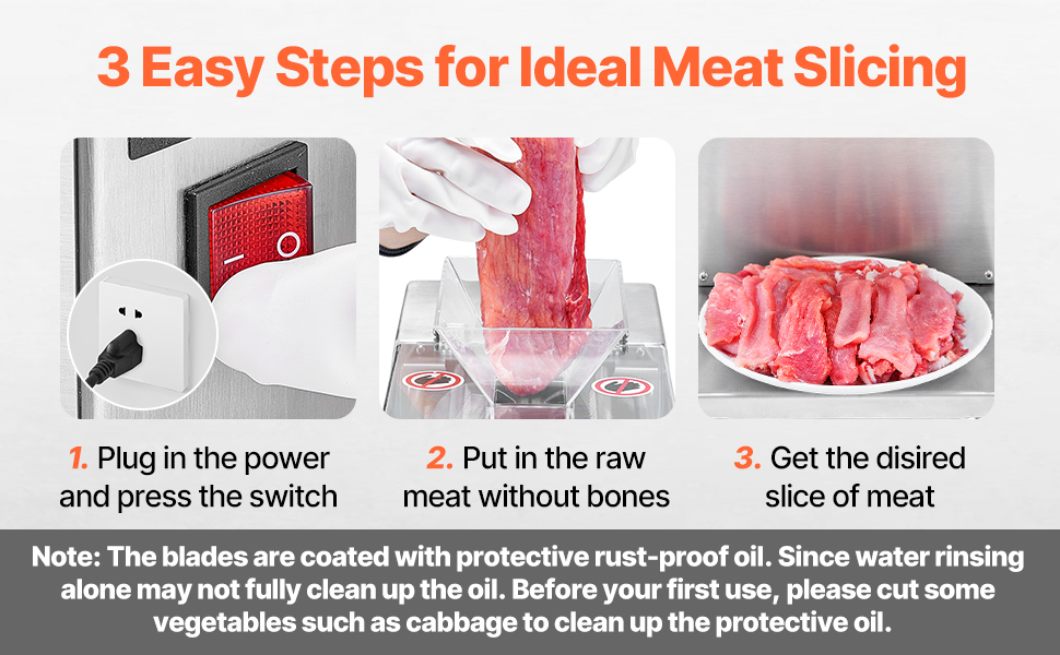 Nepotrebujete žiadne zložité návody! Vďaka jedinému tlačidlu na spustenie sa náš krájač na mäso jednoducho používa. Vodotesný a prachotesný spínač zaručuje, že zostane funkčný a čistý v akomkoľvek prostredí.