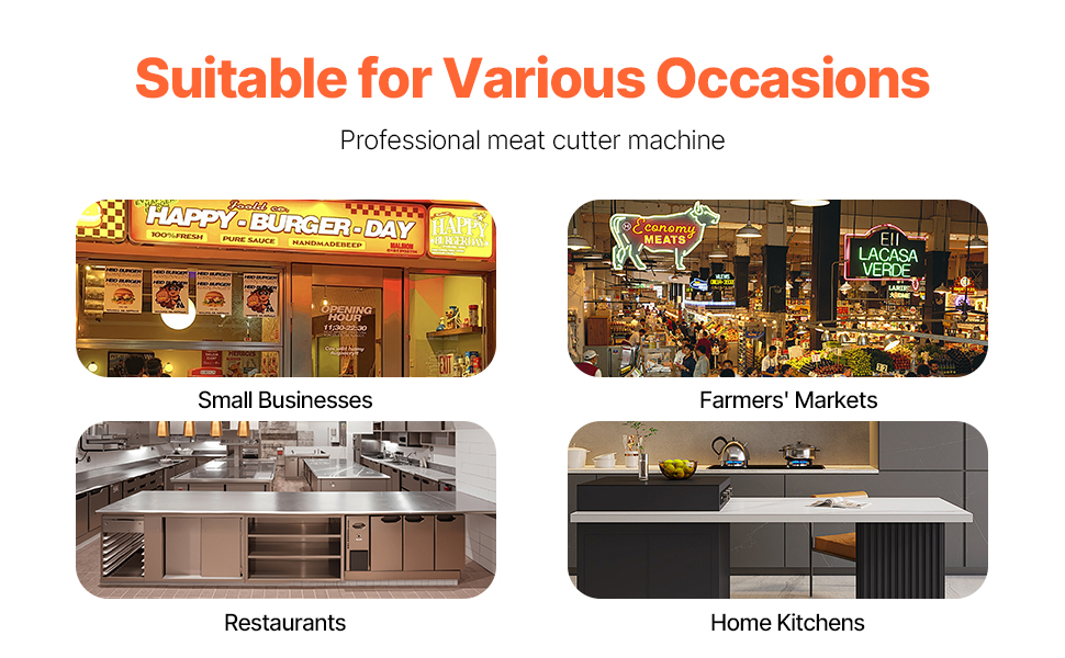 Či už ide o domácu kuchyňu, reštauráciu, supermarket alebo mäsiarsky trh, tento stroj na krájanie mäsa je skonštruovaný tak, aby prácu zvládol s ľahkosťou.