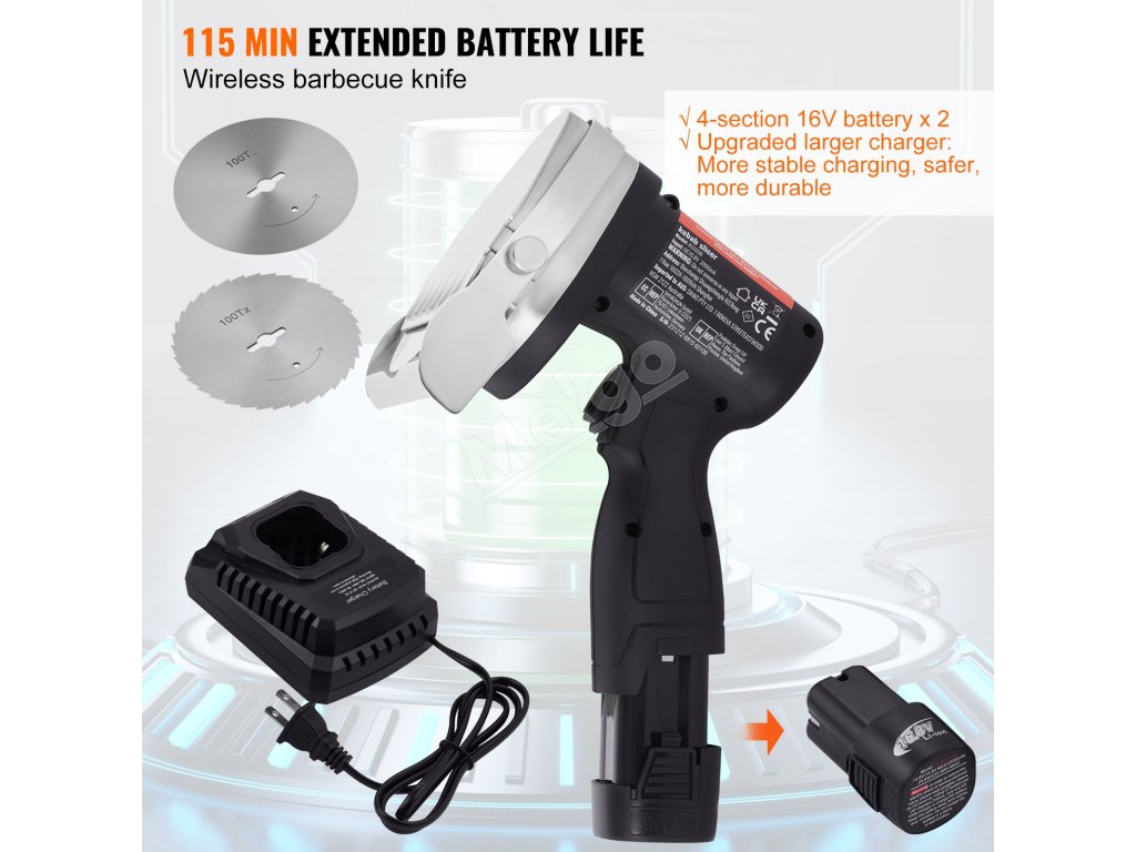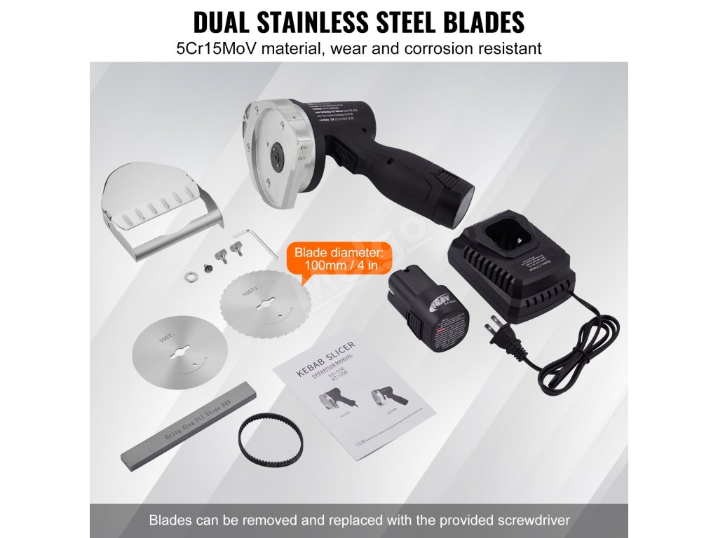 Elektrický nôž na kebab a gyros, batériový, 100 mm, 2 čepele, 0–8 mm