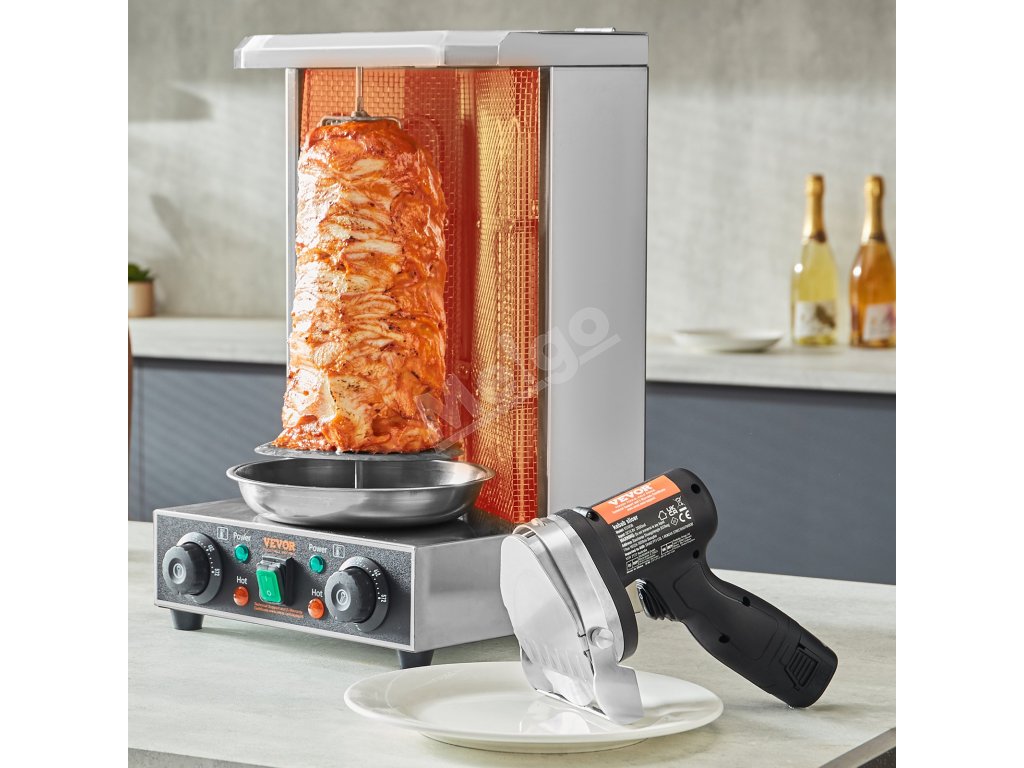 Nôž na šawarmu je vybavený účinným 80W motorom na vysokorýchlostné krájanie mäsa, ktorý pozdvihne vašu produktivitu na novú úroveň a ušetrí vám drahocenný čas na prípravu jedla.