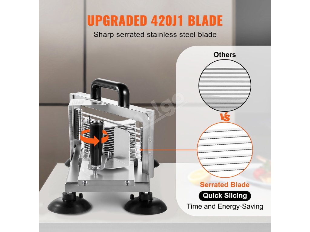 Tento krájač na paradajky je vybavený čepeľami z nehrdzavejúcej ocele 420J1 a bez námahy krája rôzne druhy zeleniny. Vďaka ergonomickému a pracovne úspornému dizajnu výrazne zvyšuje vašu produktivitu a šetrí drahocenný čas na prípravu jedla.